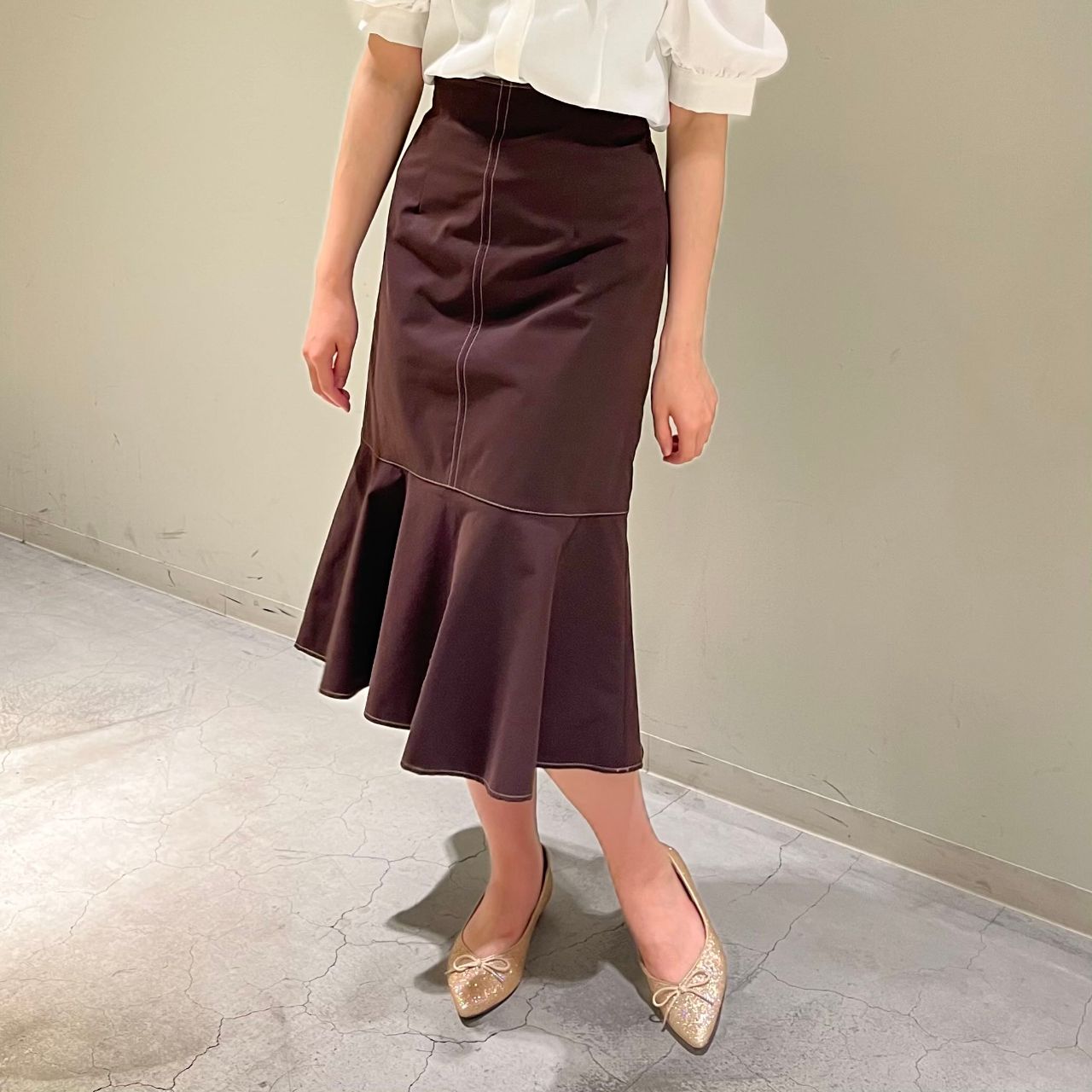 【配色ステッチペプラムマーメイドスカート】