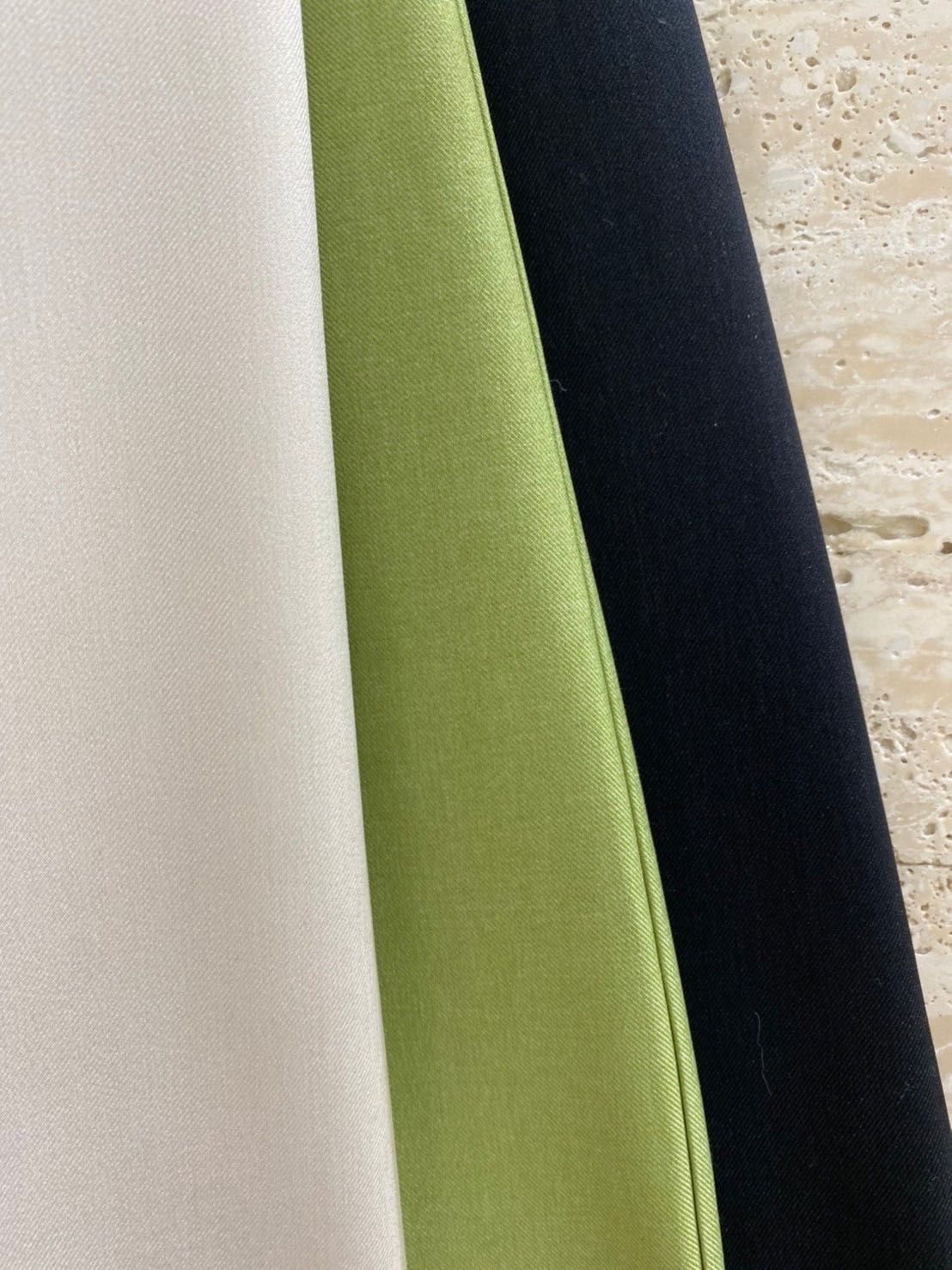 こちらの3色になっております。定番色の2色に加え、何にでも合わせやすいグリーンなのでどの色を選んでも間違いありません!!