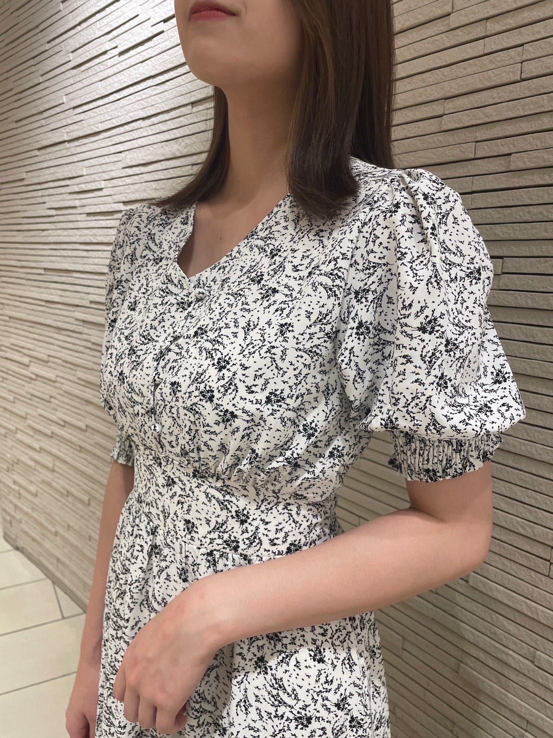 【Vネック花柄ワンピース】