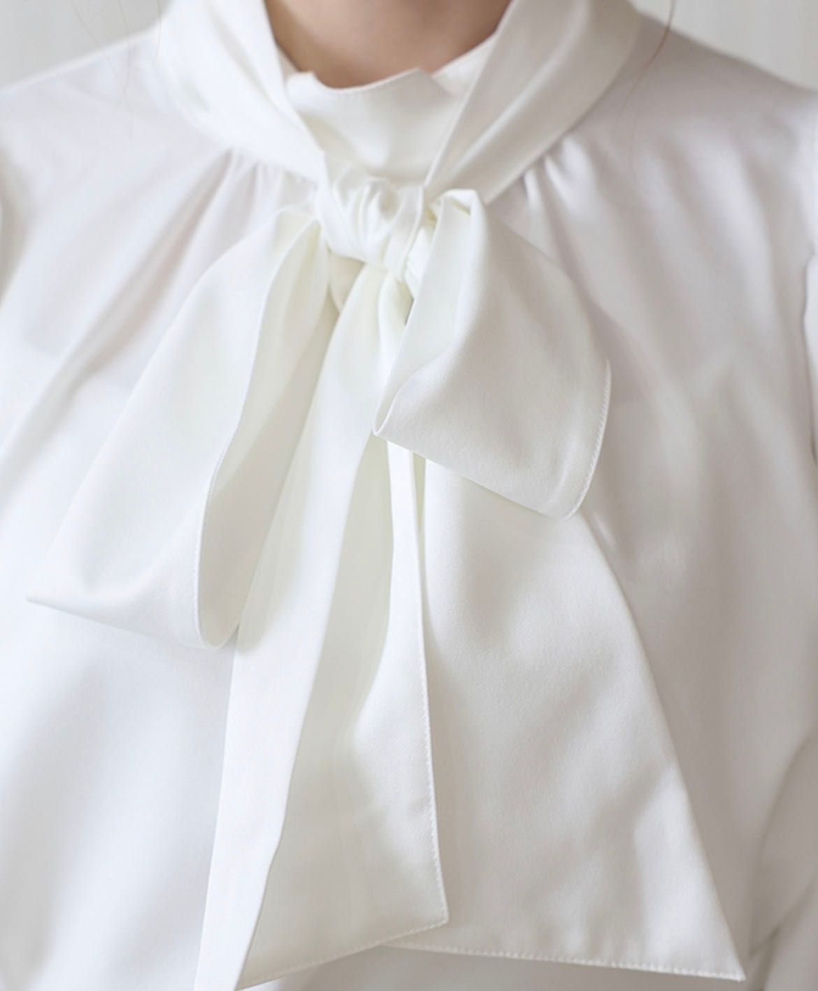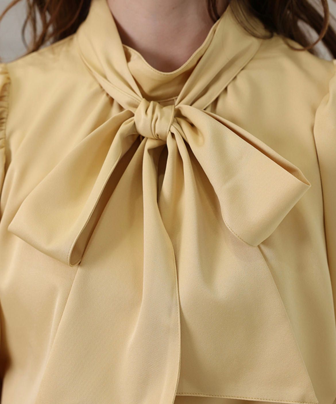 〈リボンタイハイネックボリュームスリーブブラウス〉
