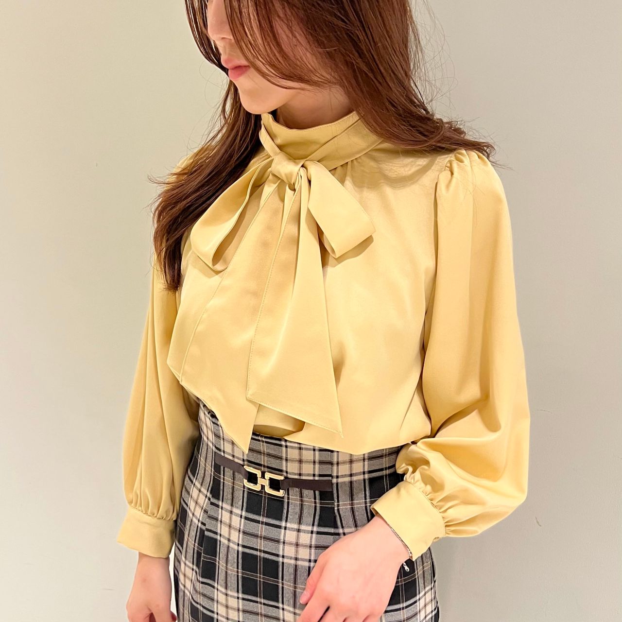 光沢感のある生地感と胸元のリボンでクラシカルな印象のブラウス✨