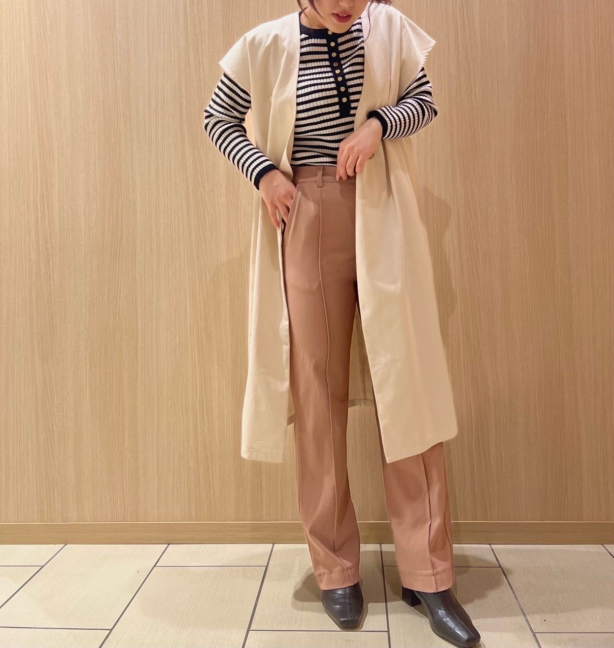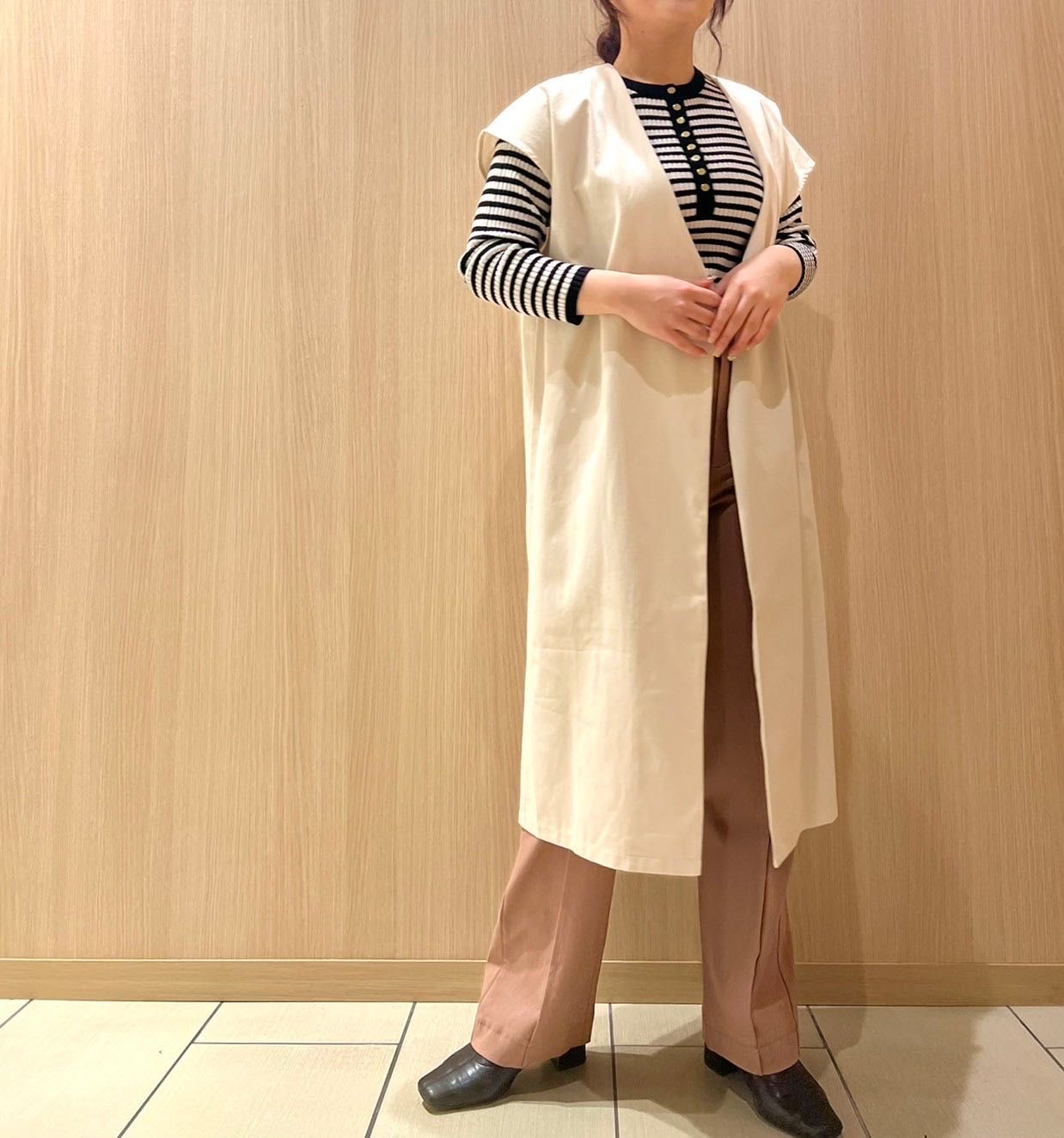 シンプルなシャツブラウスにレイヤードして着るのが今年らしくこなれ感が出るのでオススメです!