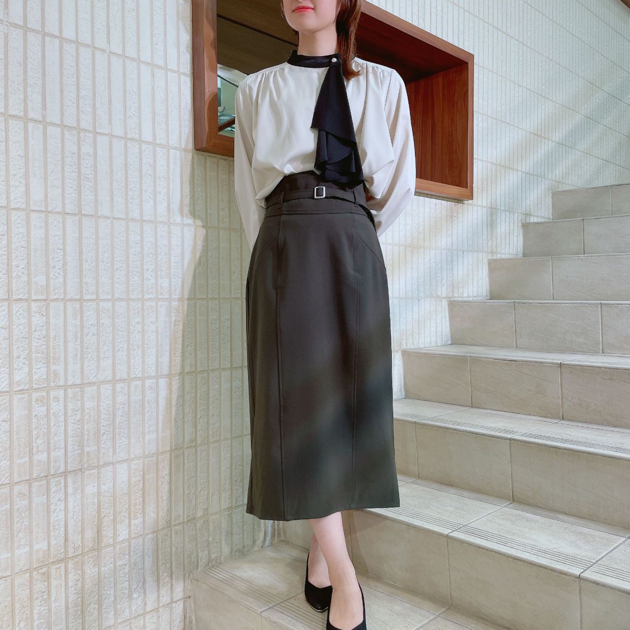 タイトで合わせるとオフィススタイルできちんと感がでる印象になりますよね!