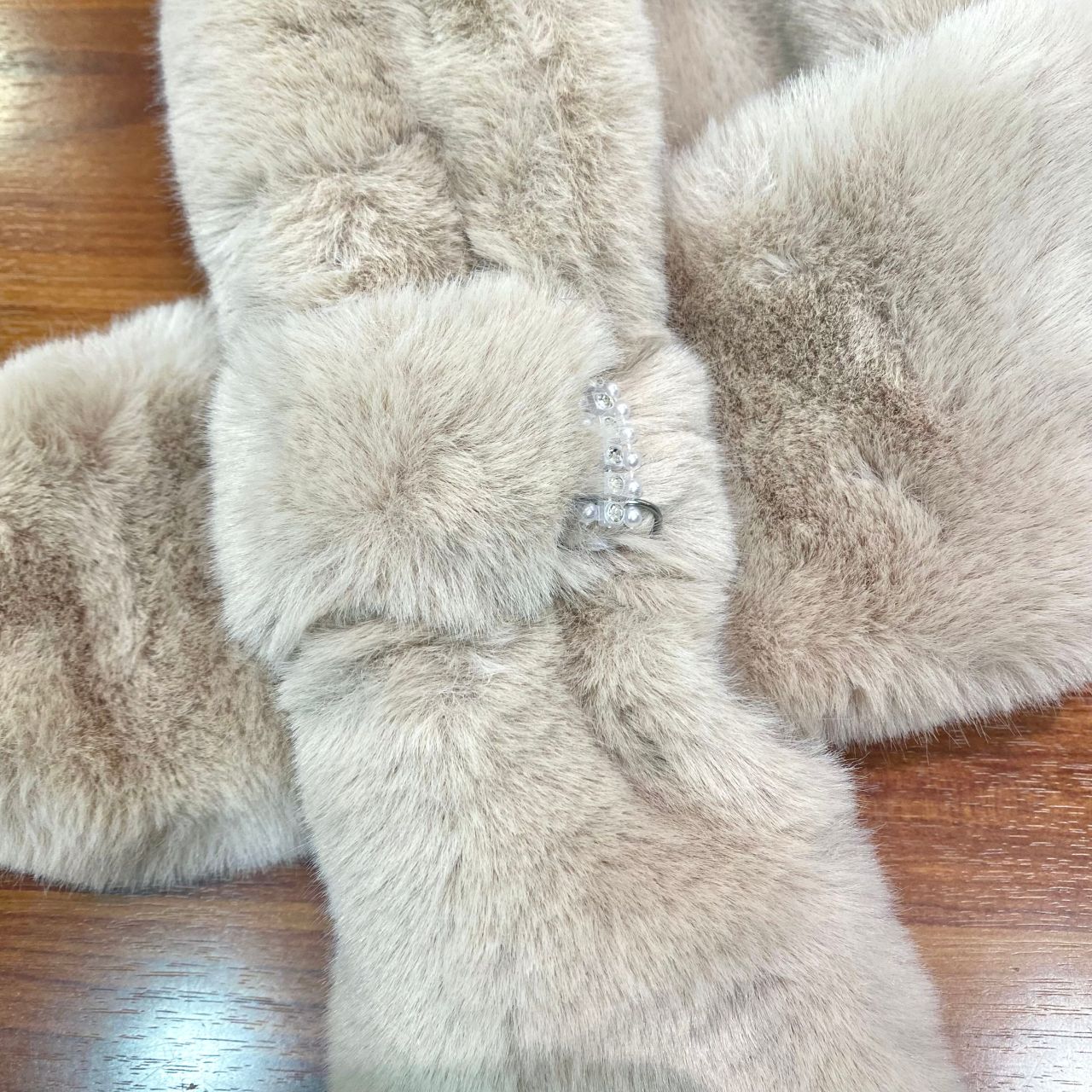 差し込みの部分にパールのビジューが付いているので、シンプル過ぎず上品なマフラーになっております♡