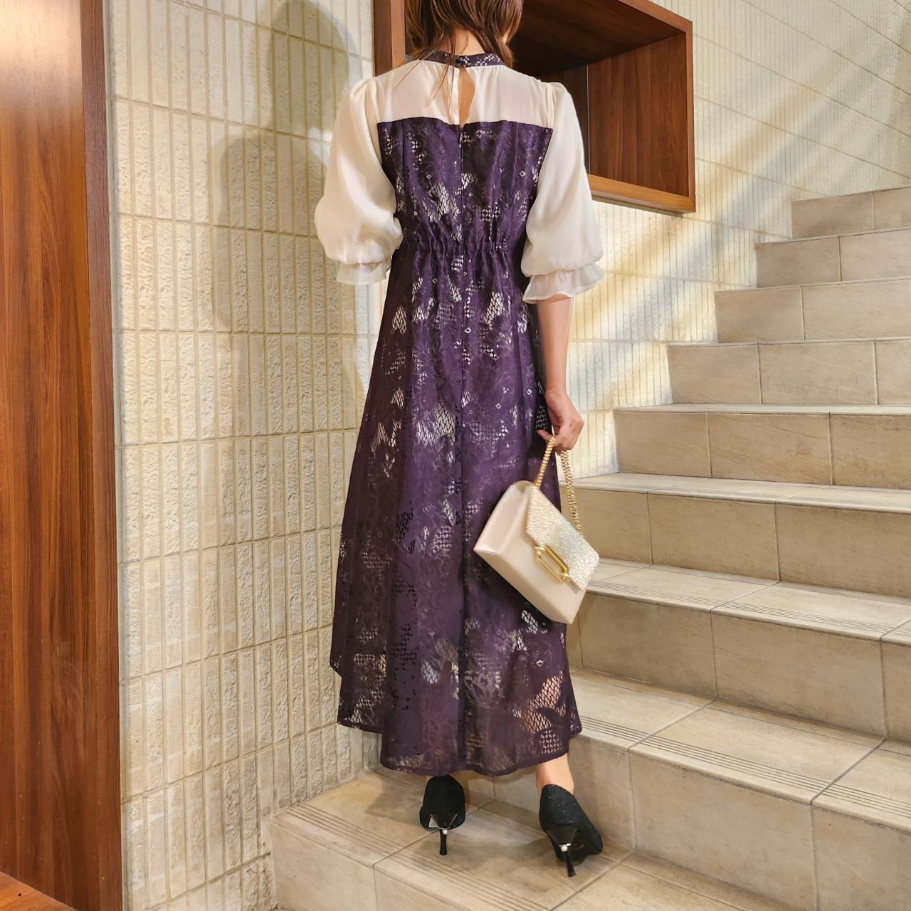 大きめのジャガードレースが華やかな印象の大人フェミニンなドレスです♪