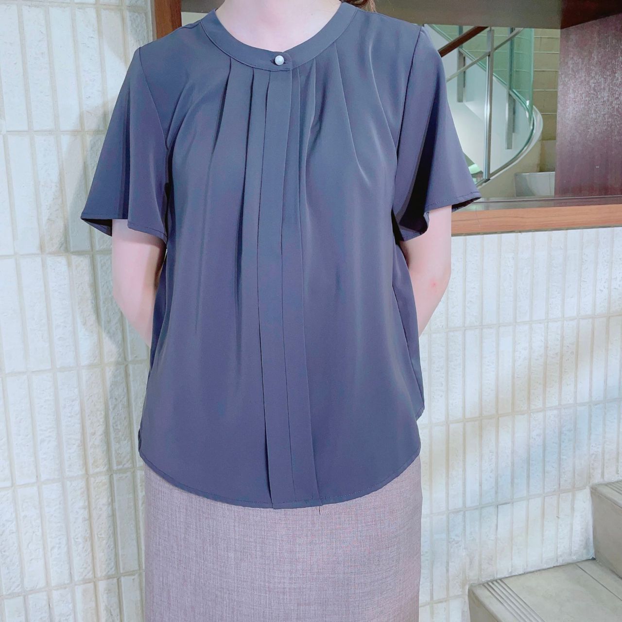 首元のボタンを外しても着れる2wayタイプなのでとても便利✧︎
