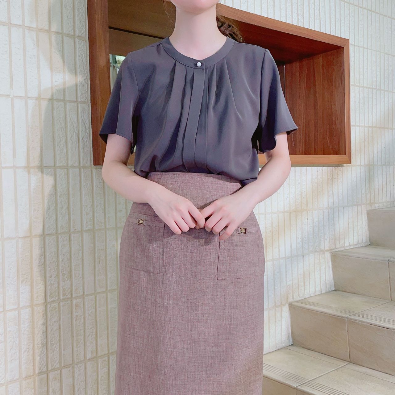 今日は大人気のバンドカラーブラウスのご紹介です♡