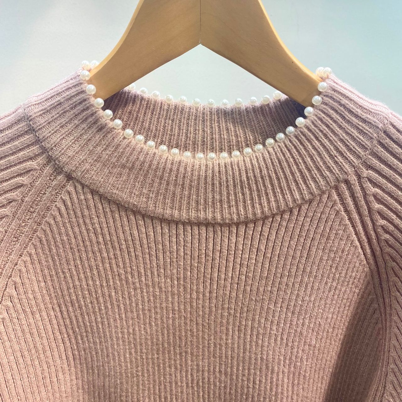 襟元にさりげなく小さいパールが付いているので、可愛すぎずカジュアルなボトムとの相性も抜群です!
