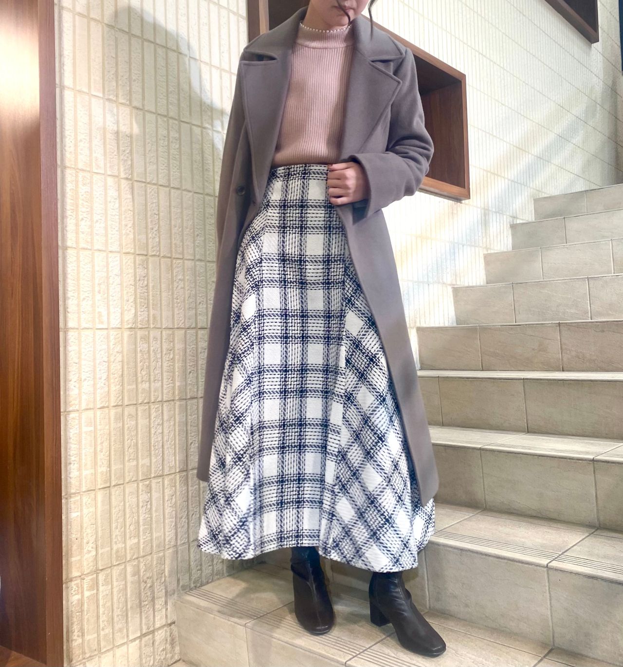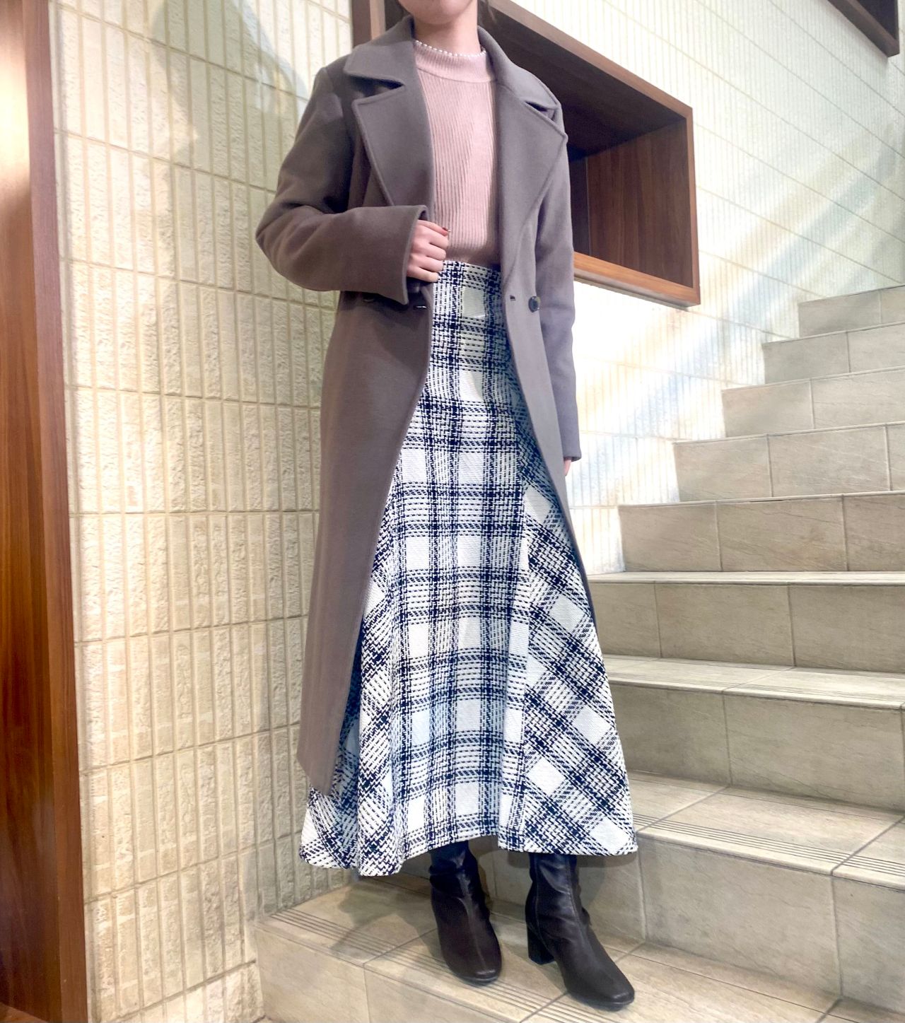 チェックのマーメイドスカートにロングコートで大人っぽい印象になります♪