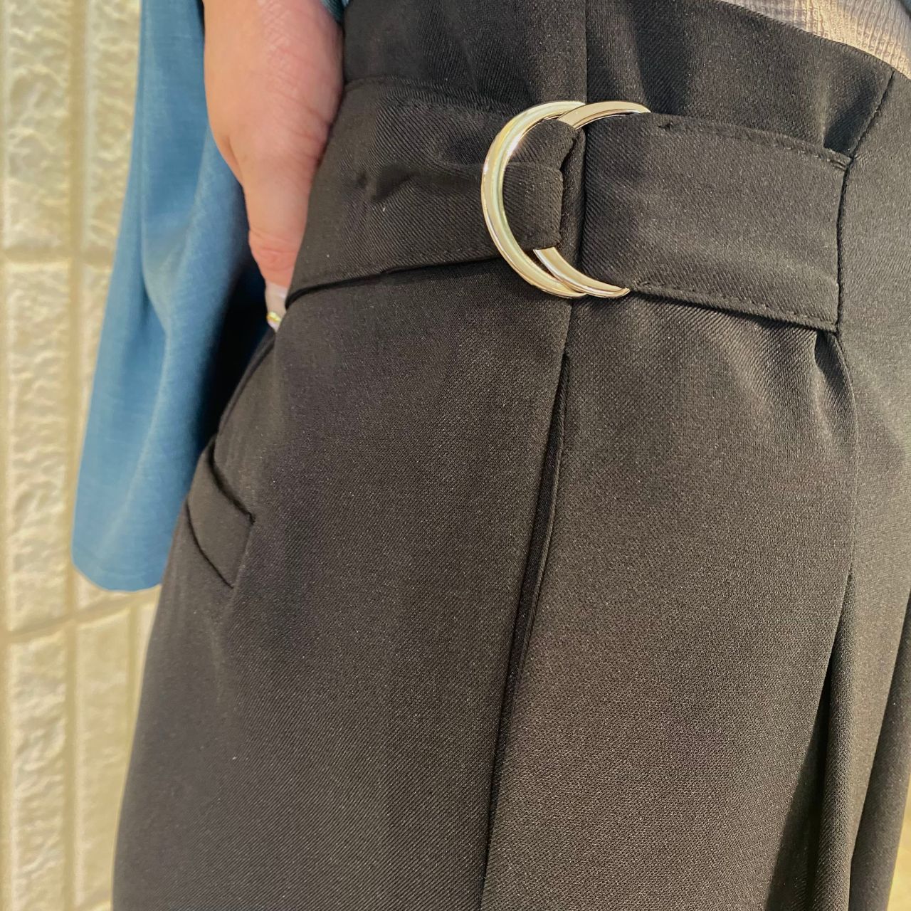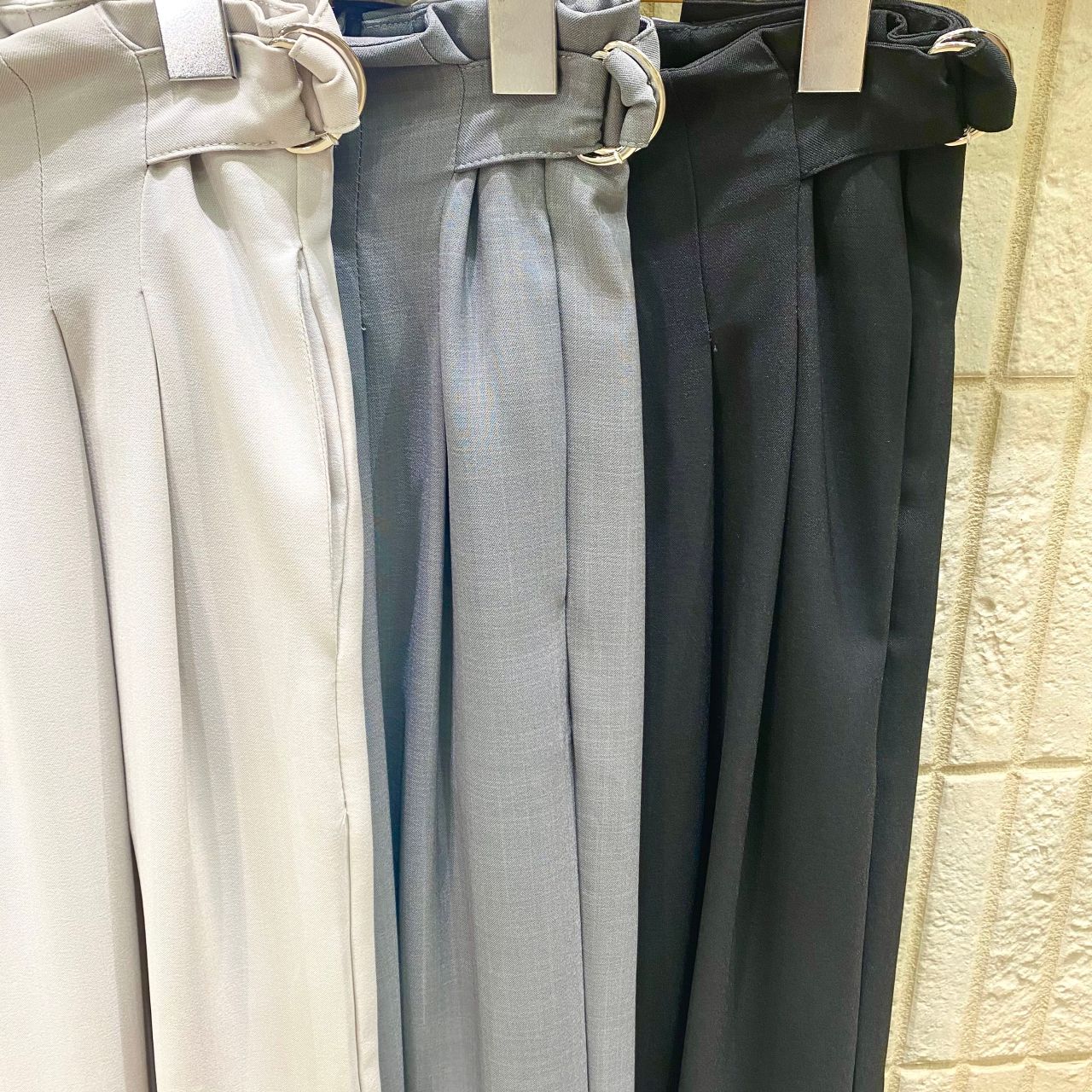 広がりがあるワイドパンツでもウエストが