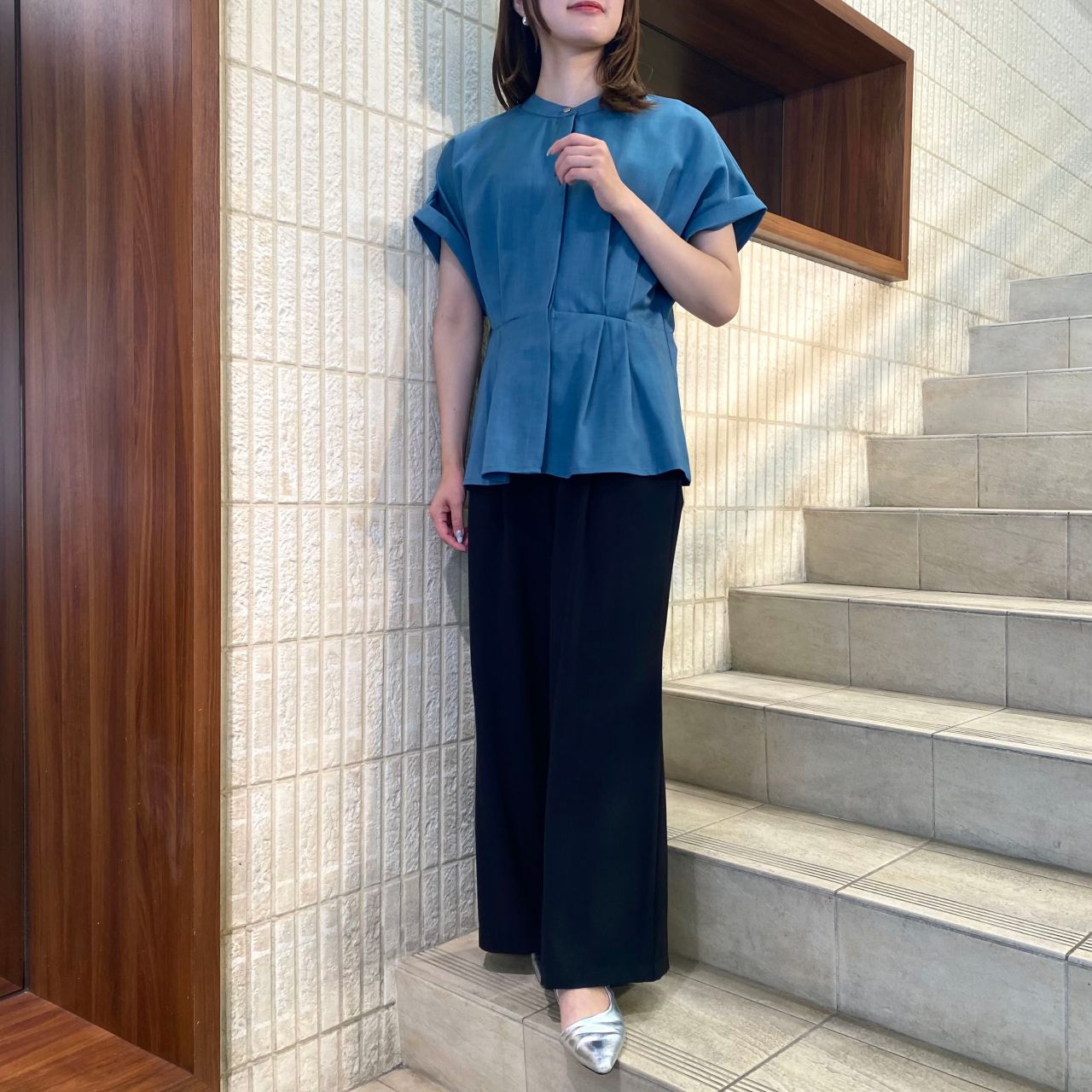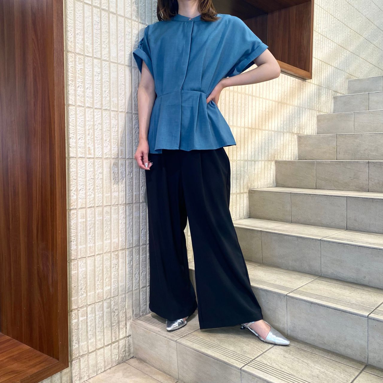 リンライクウエストタックペプラムブラウス