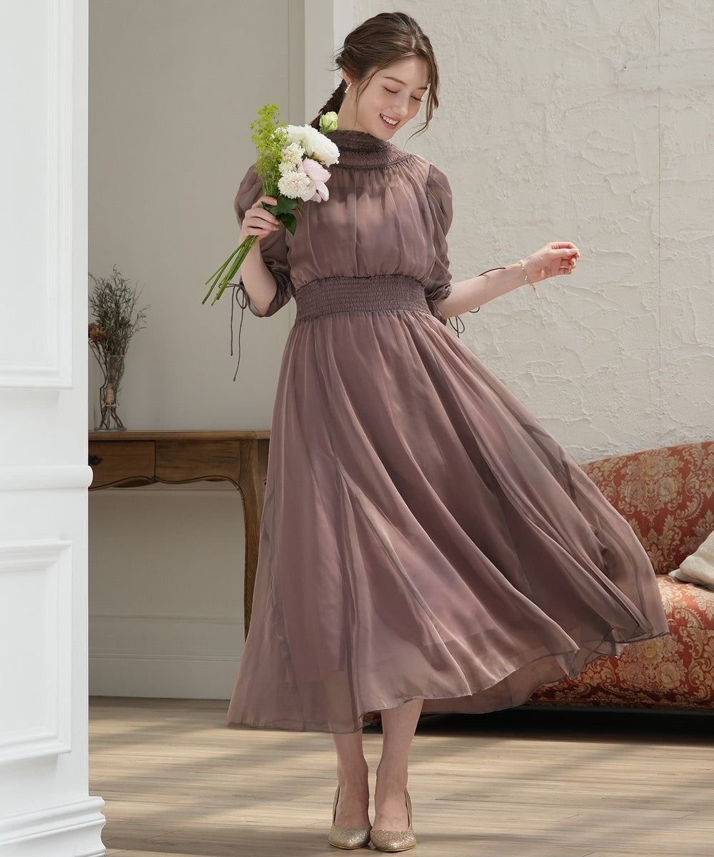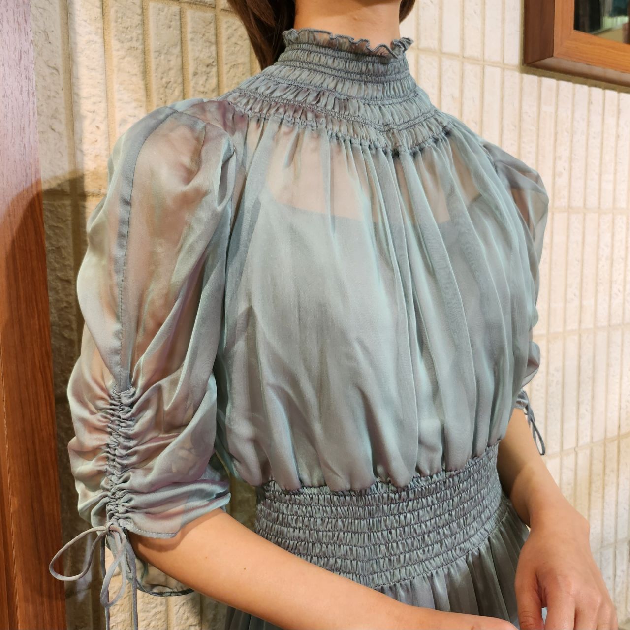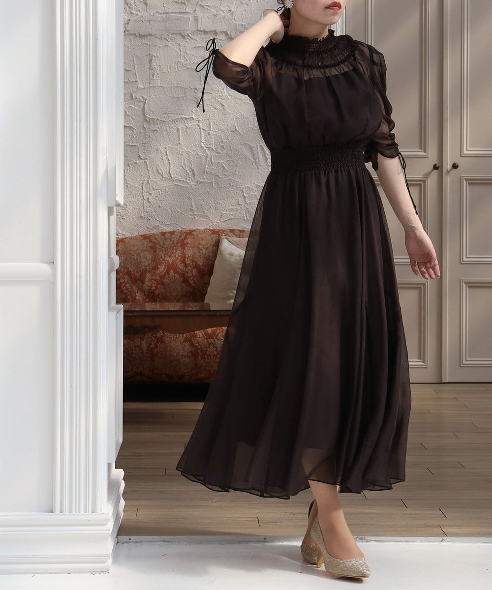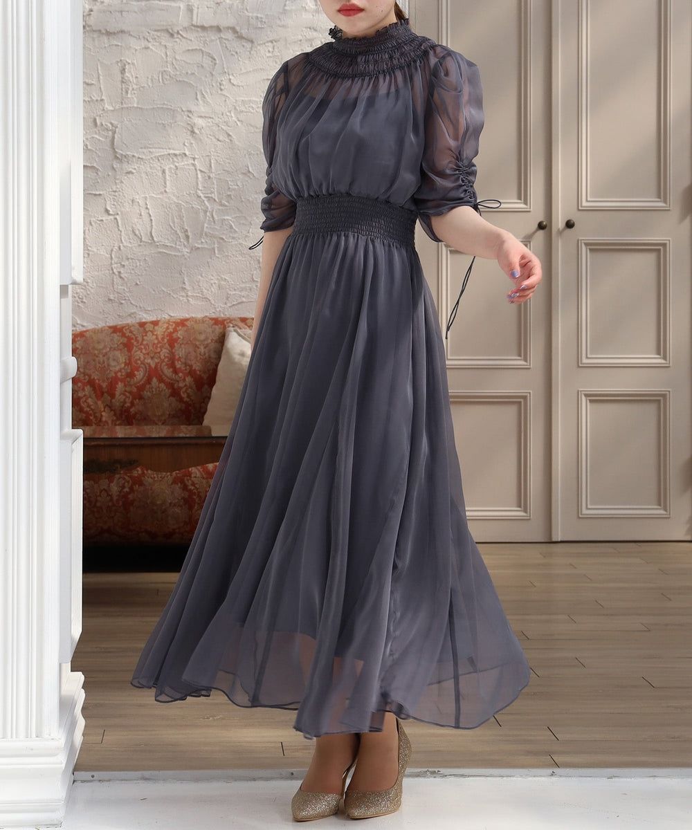 美しく繊細な透け感とシャーリングの組み合わせがどこかクラシカルな印象にしてくれます♪