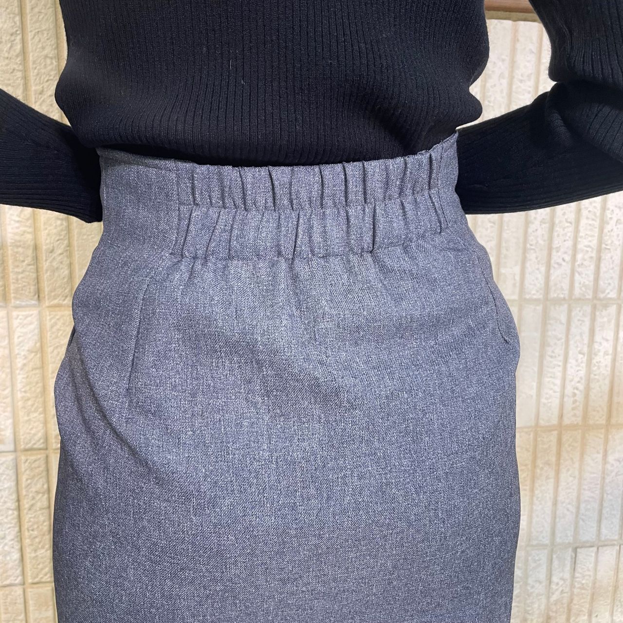 タイトスカートだと締め付け感やウエスト周りがきつくないか気にされる方もいますが、フロントゴムで着用感も軽く動きやすくなっております!