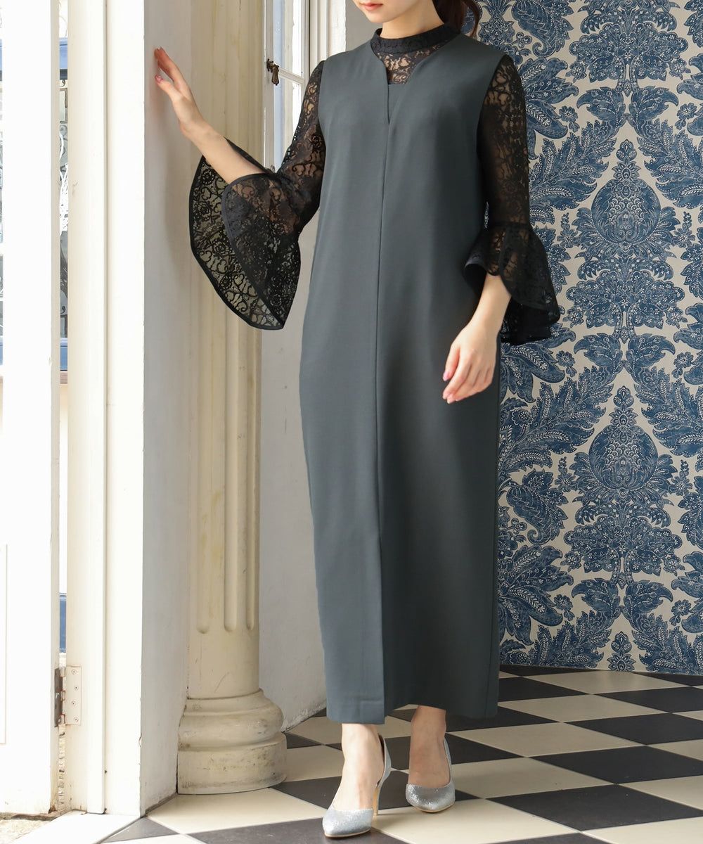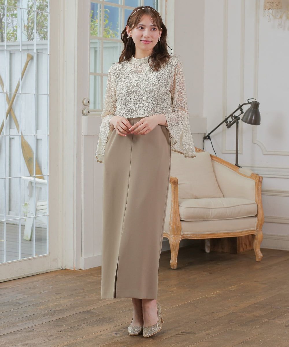 ハリ感のあるレースやフレアスリーブが上品でドレッシーな印象に♪