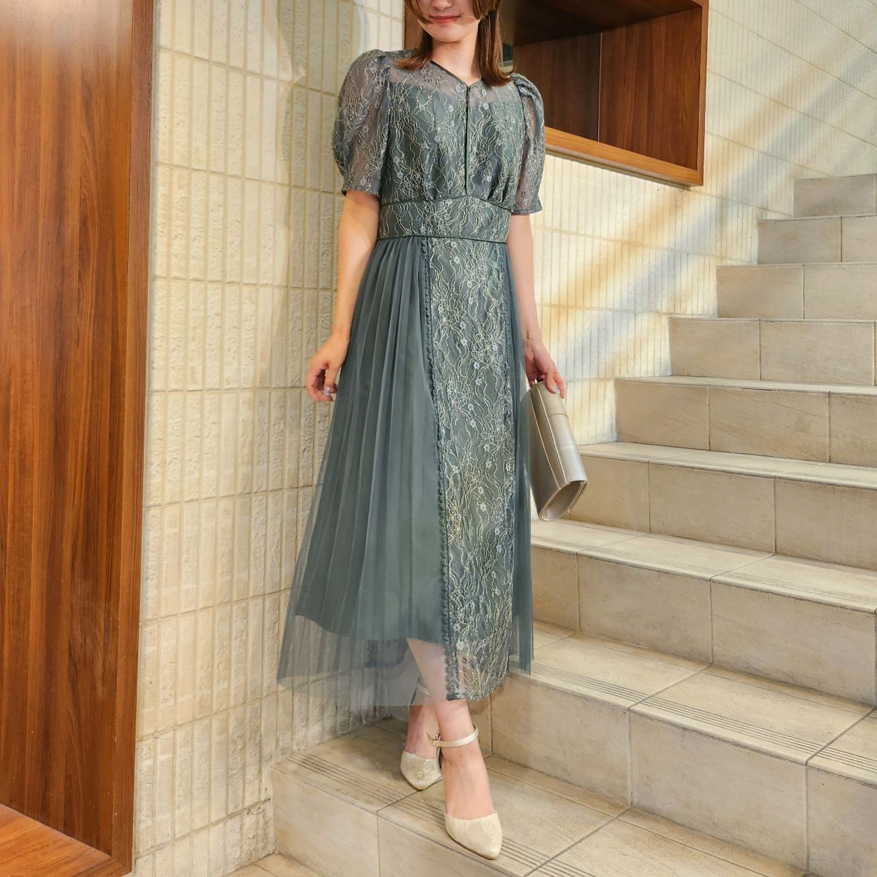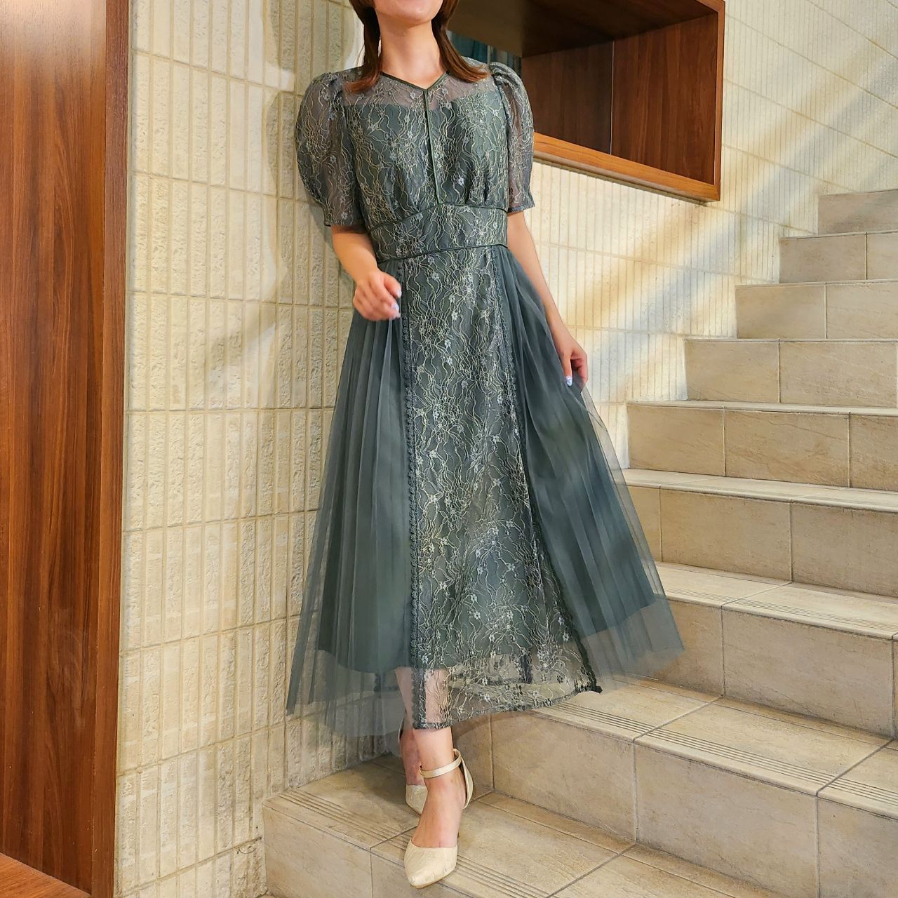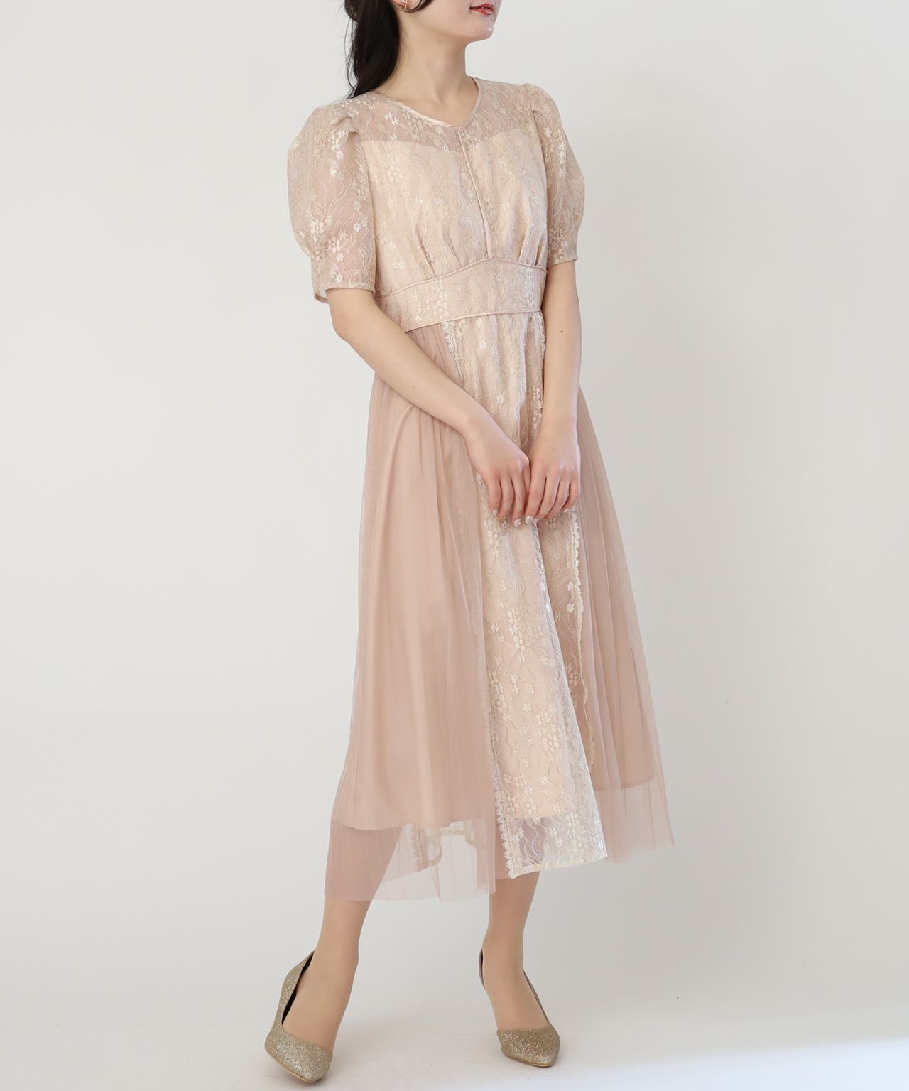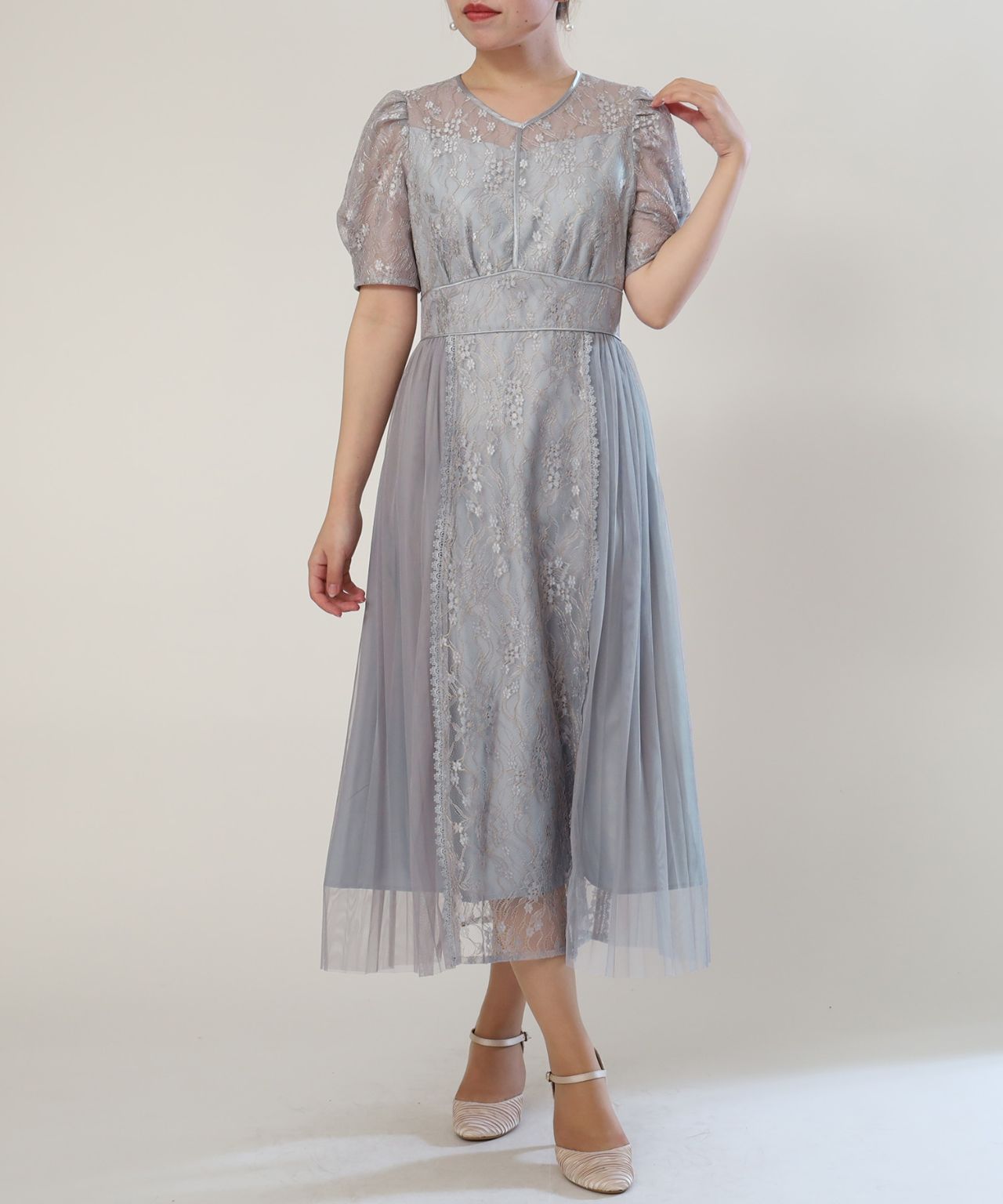 プリーツ×レースドレス