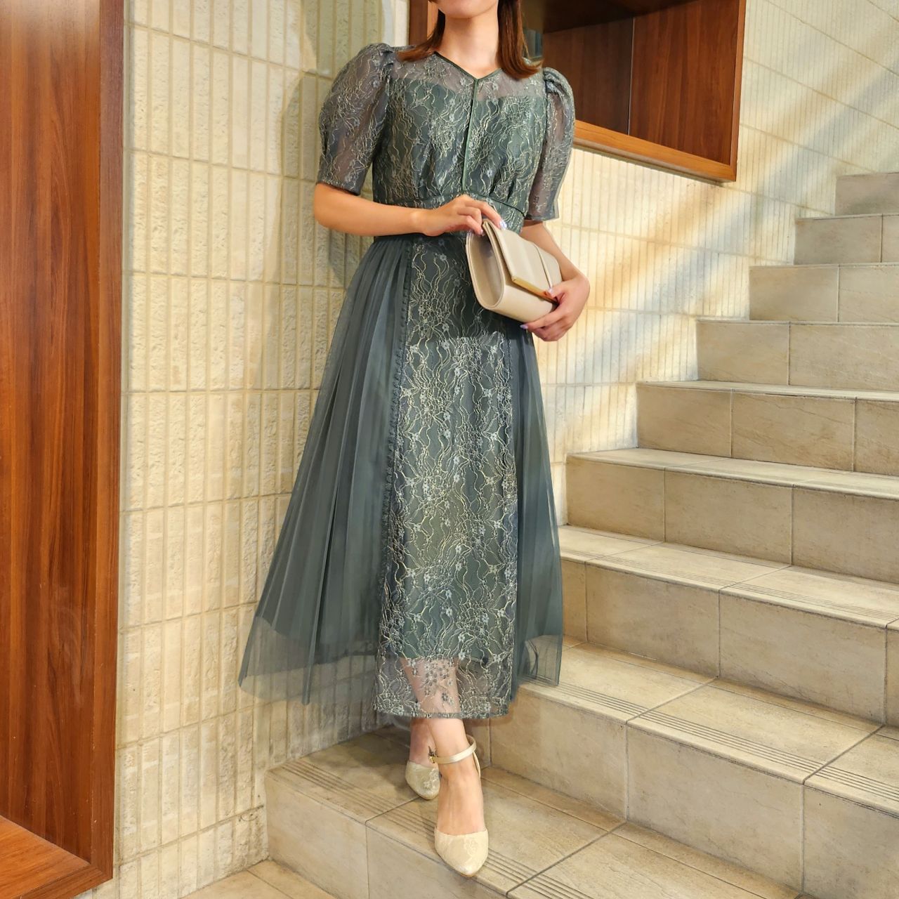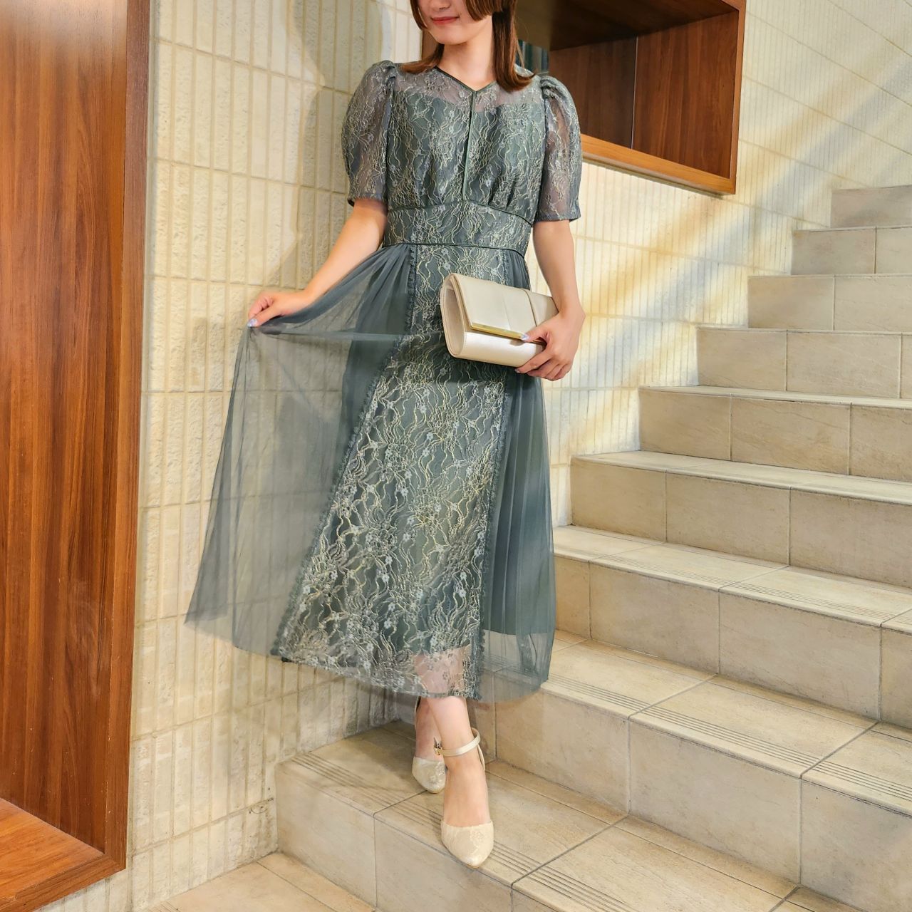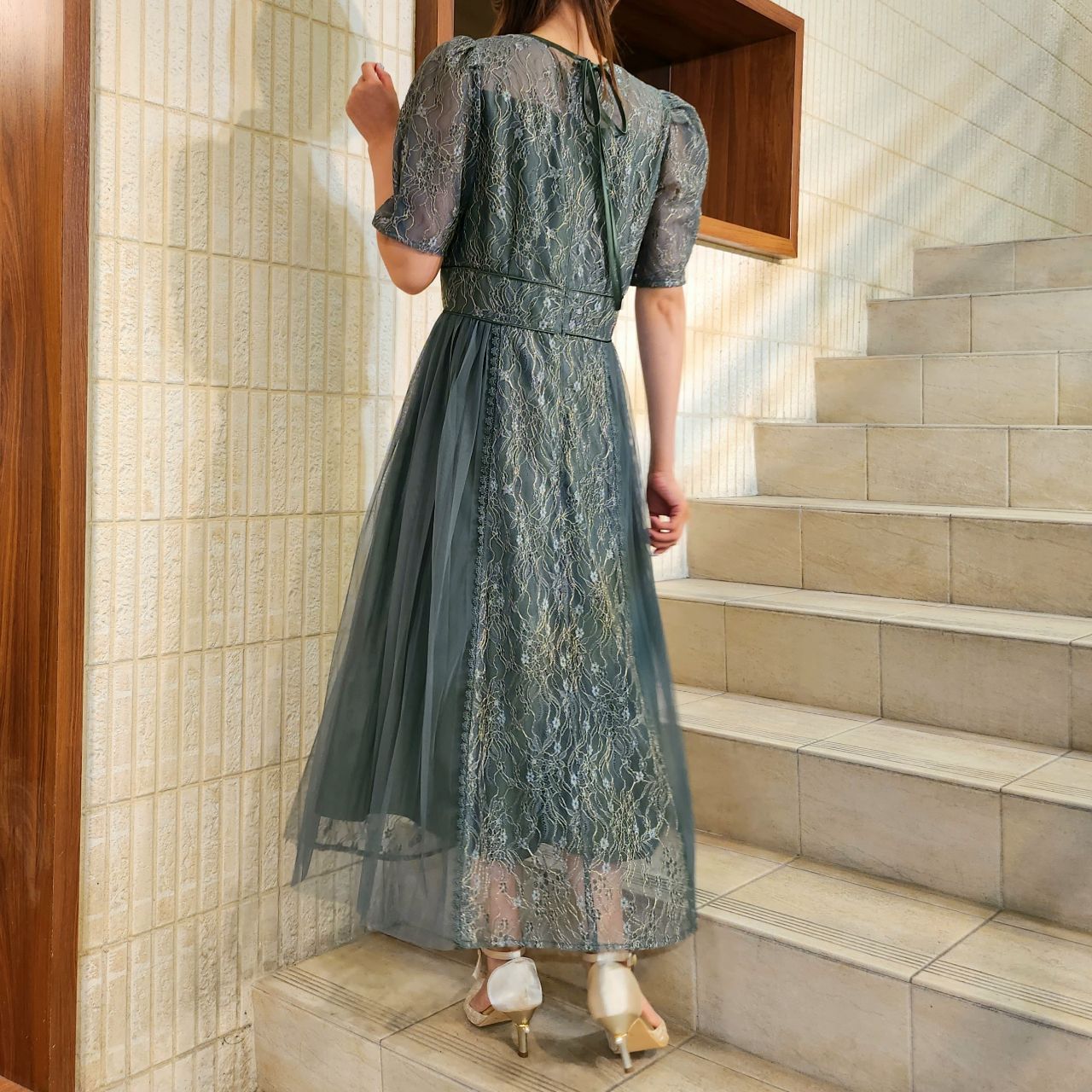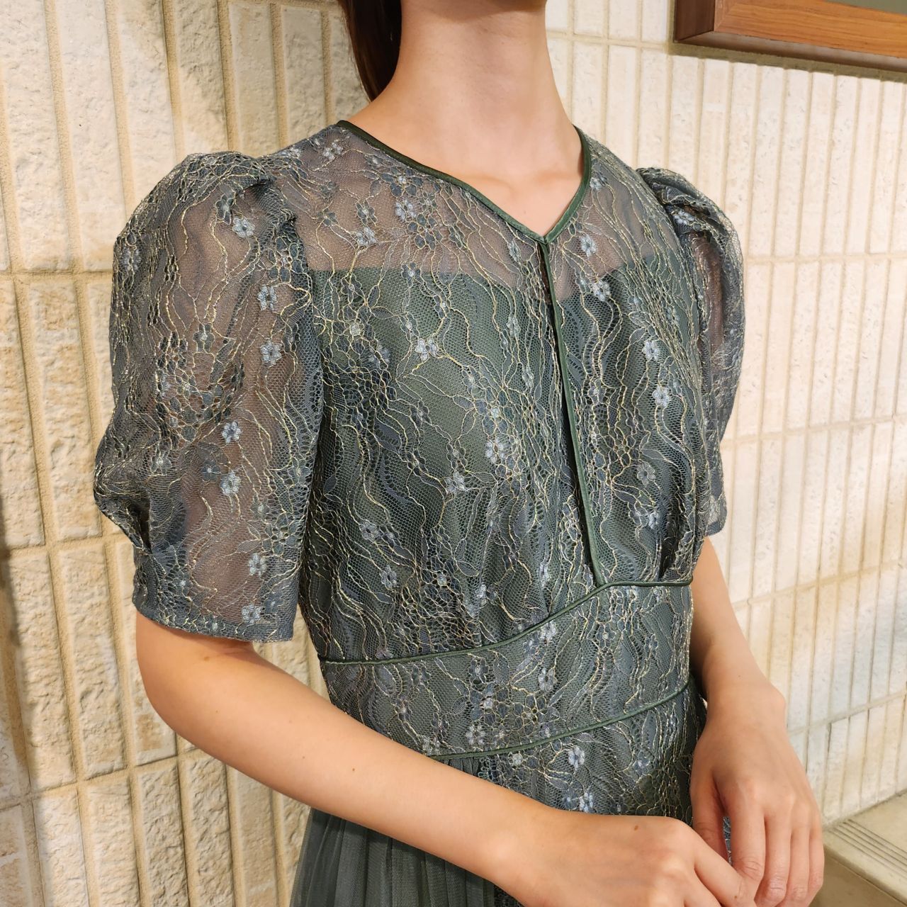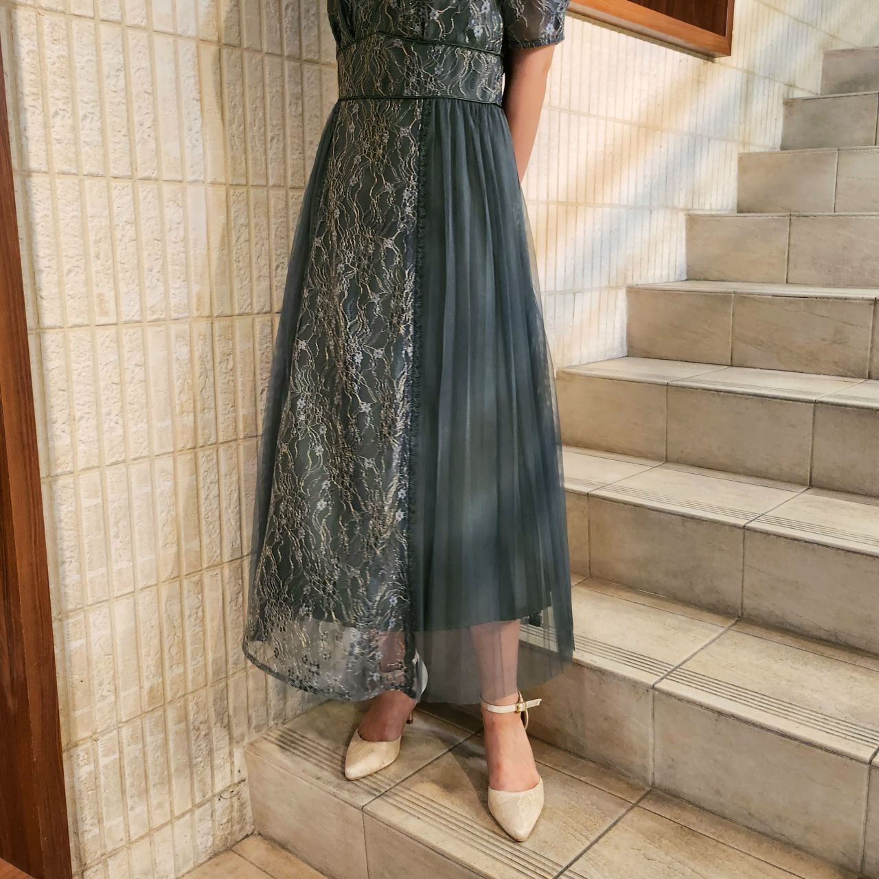 プリーツ×レースドレス