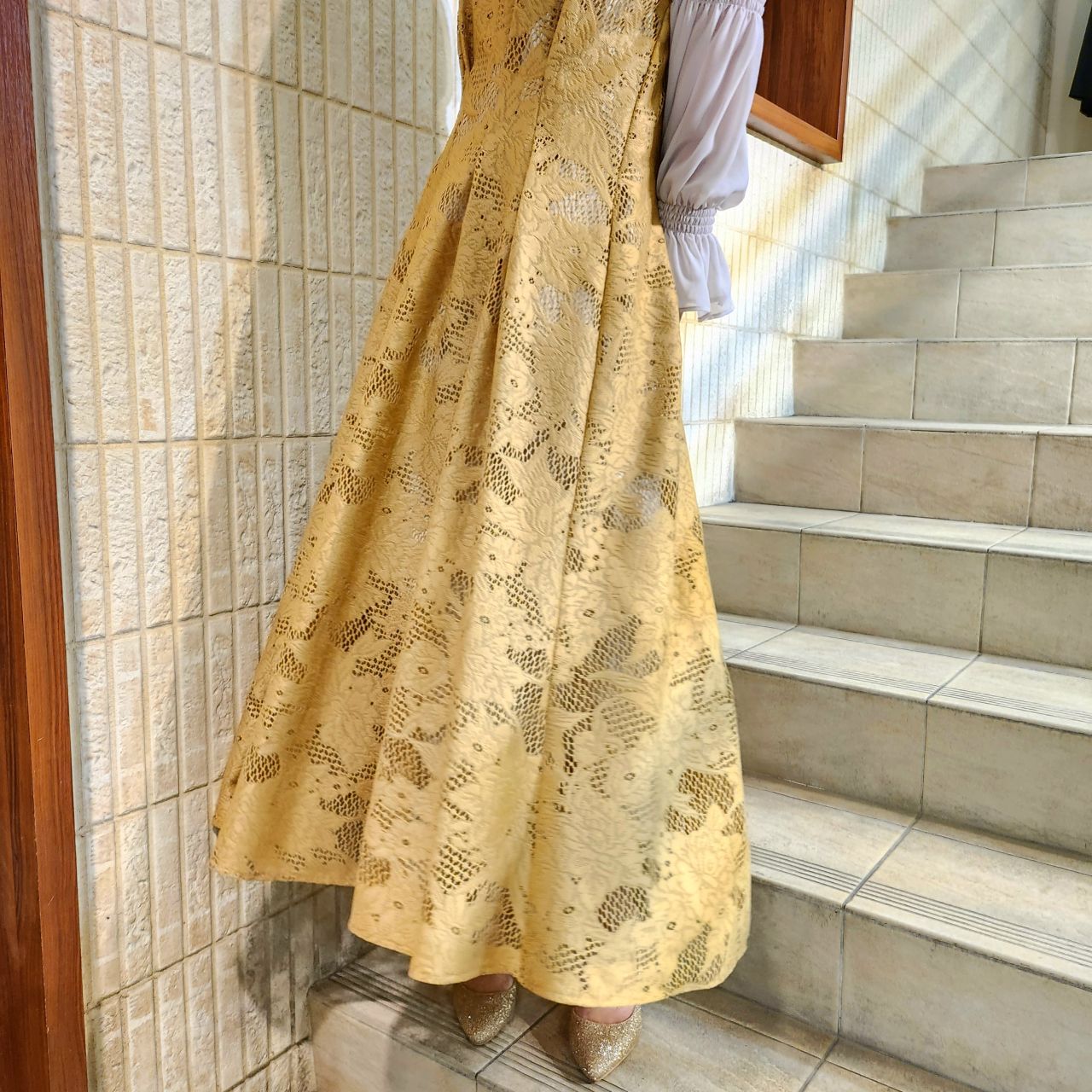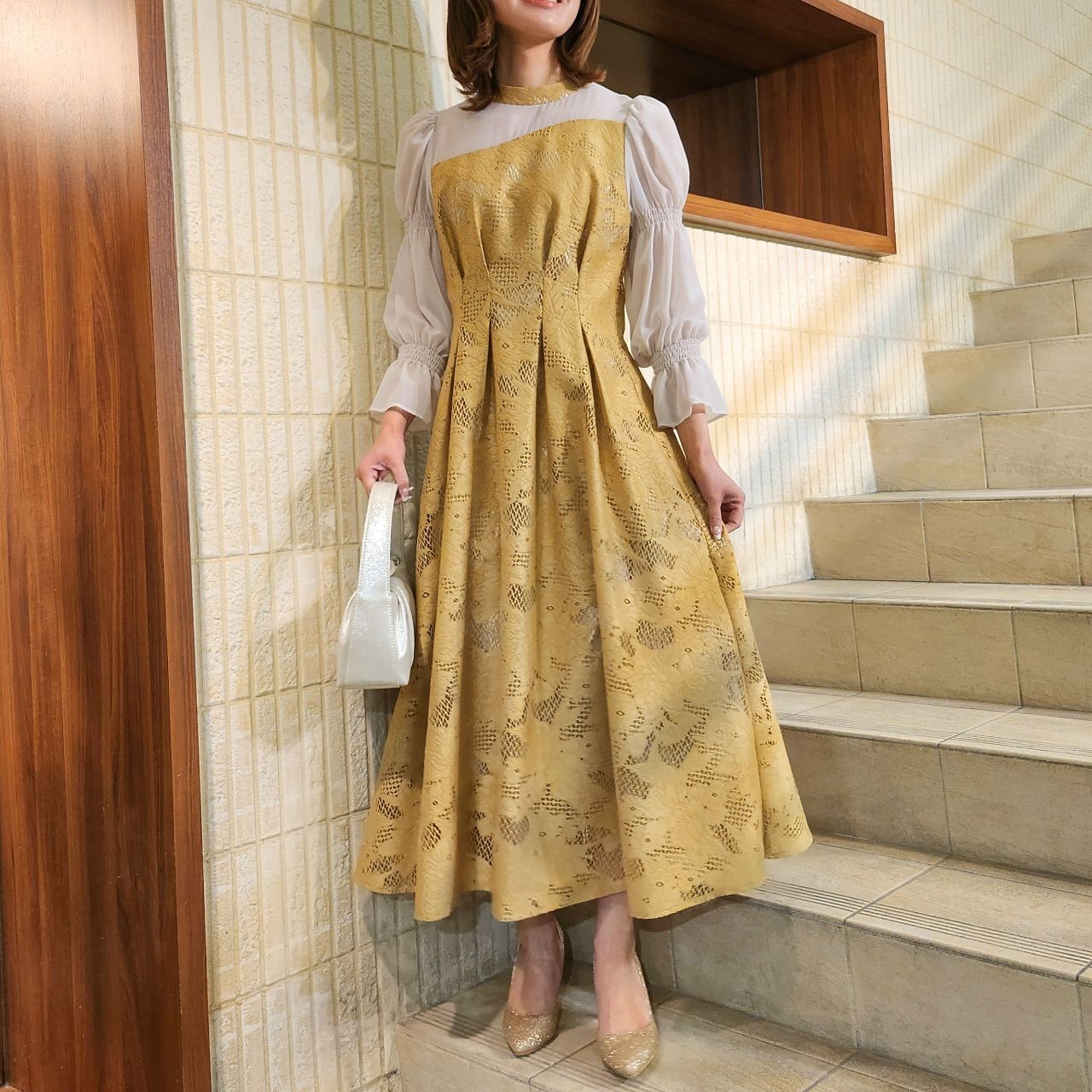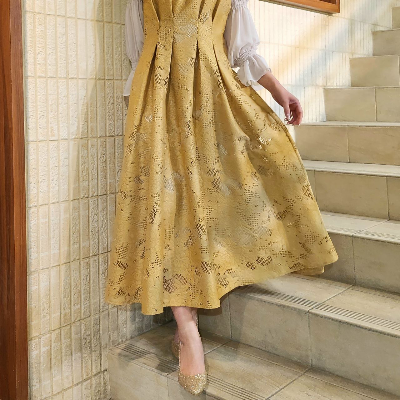 ほどよい肉感と光沢感のあるレースが高級感漂うジャガードのドレスです♪