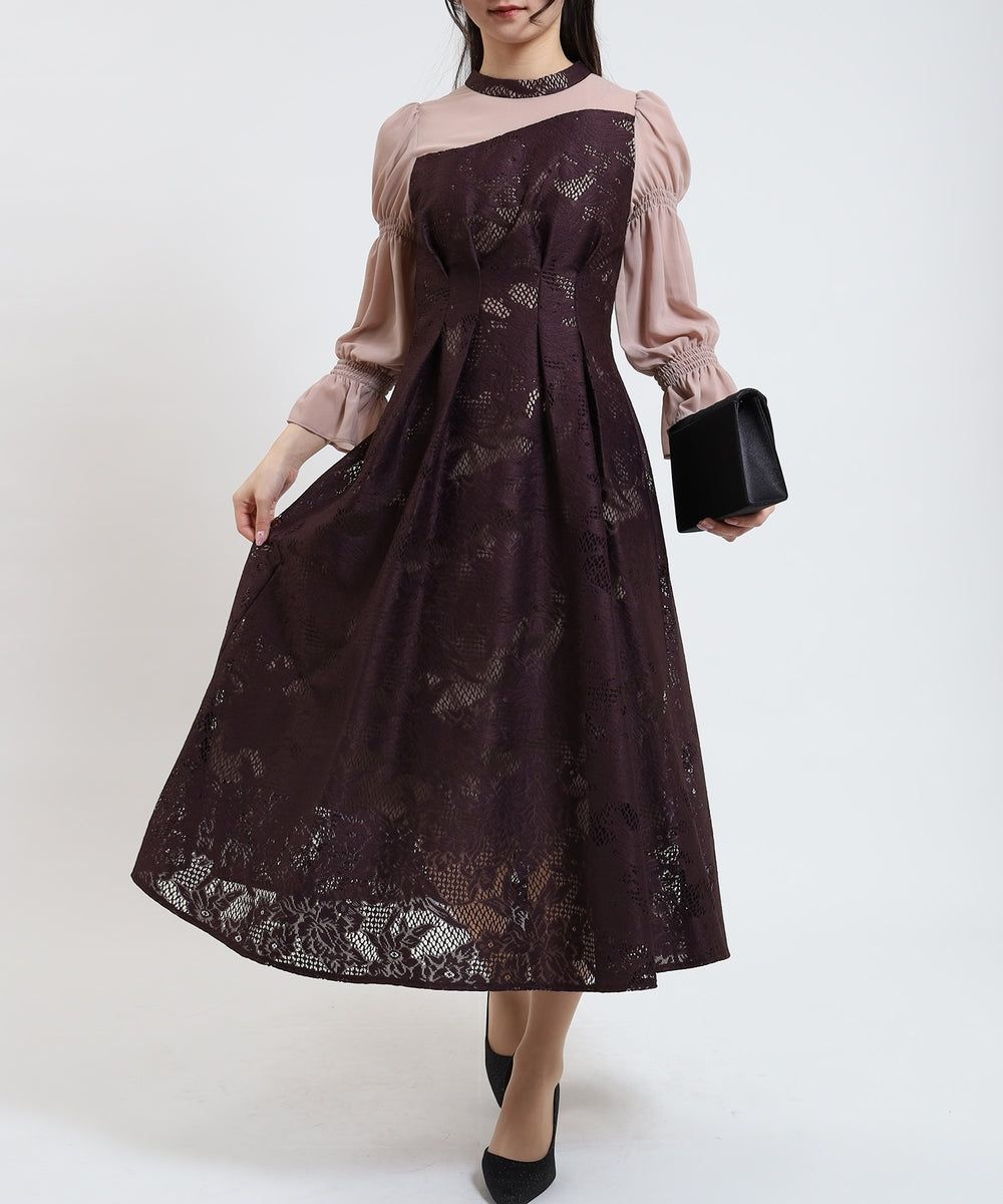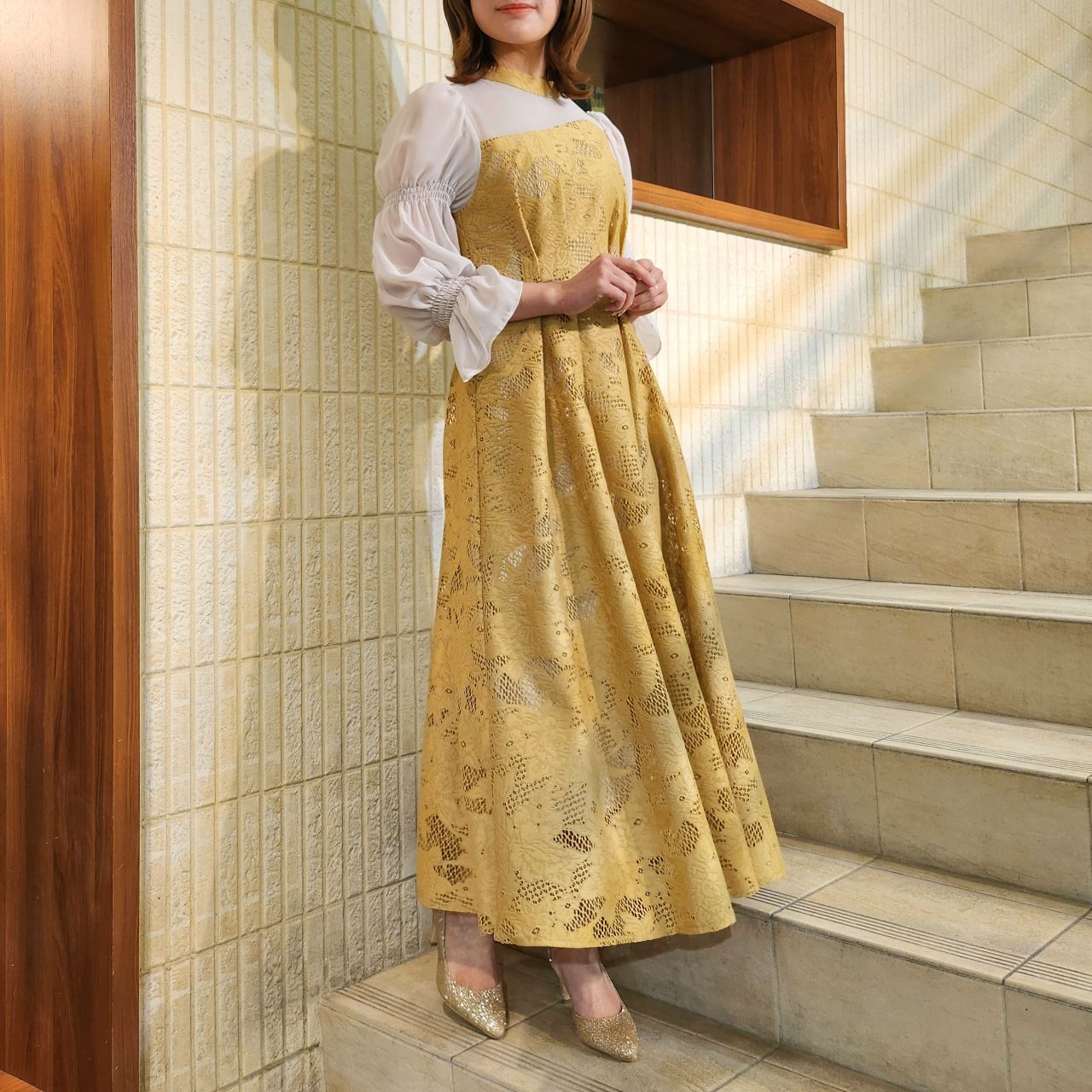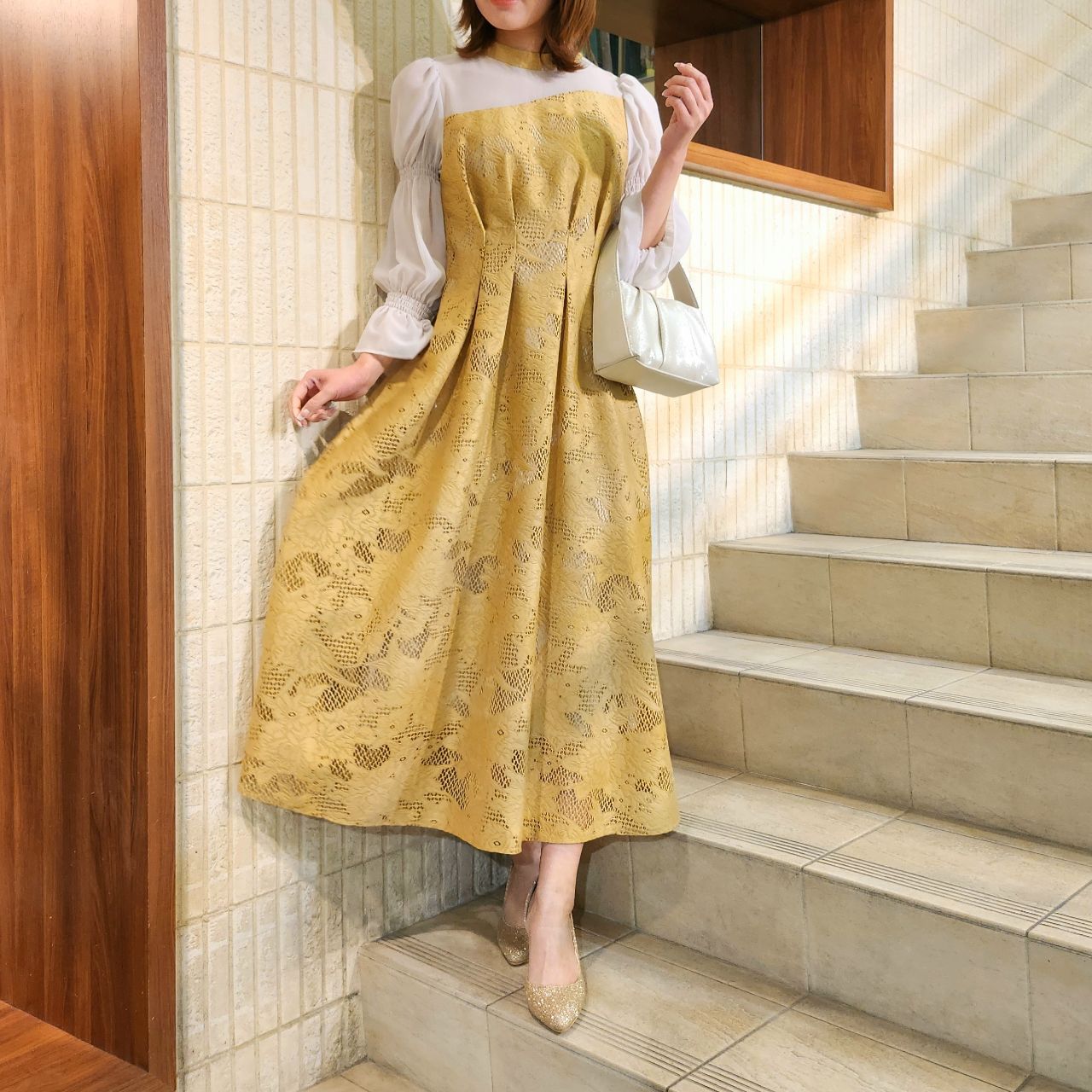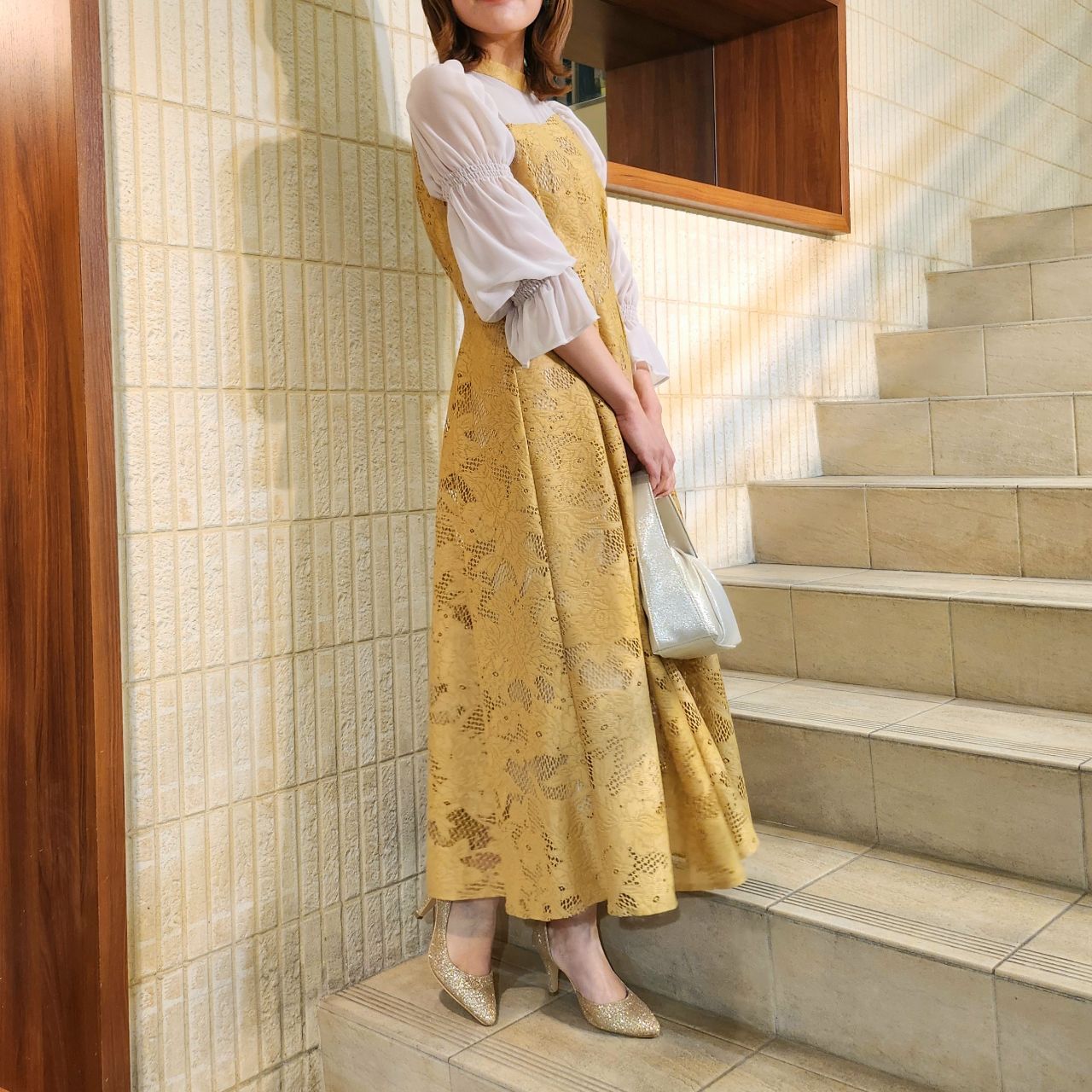 ほどよい肉感と光沢感のあるレースが高級感漂うジャガードのドレスです♪