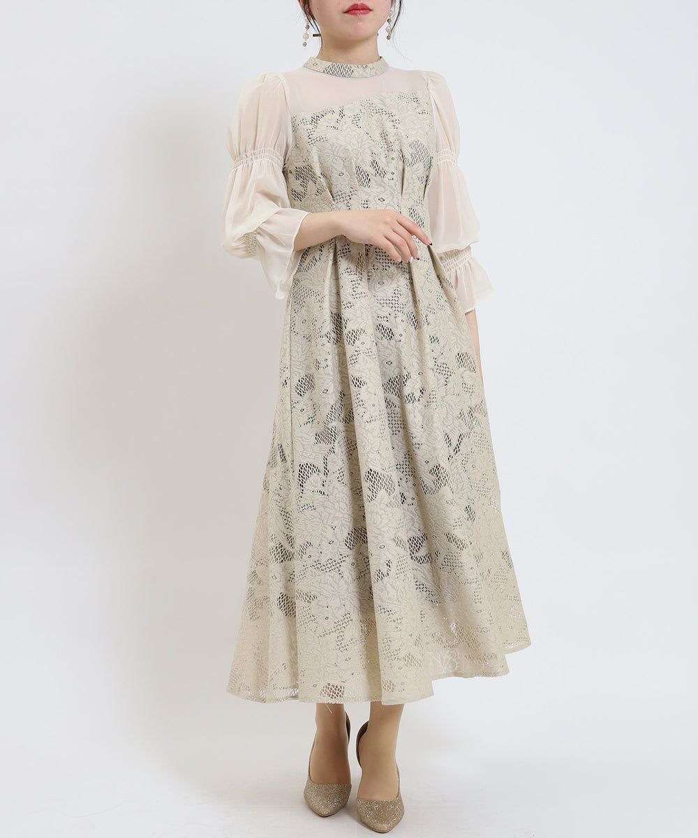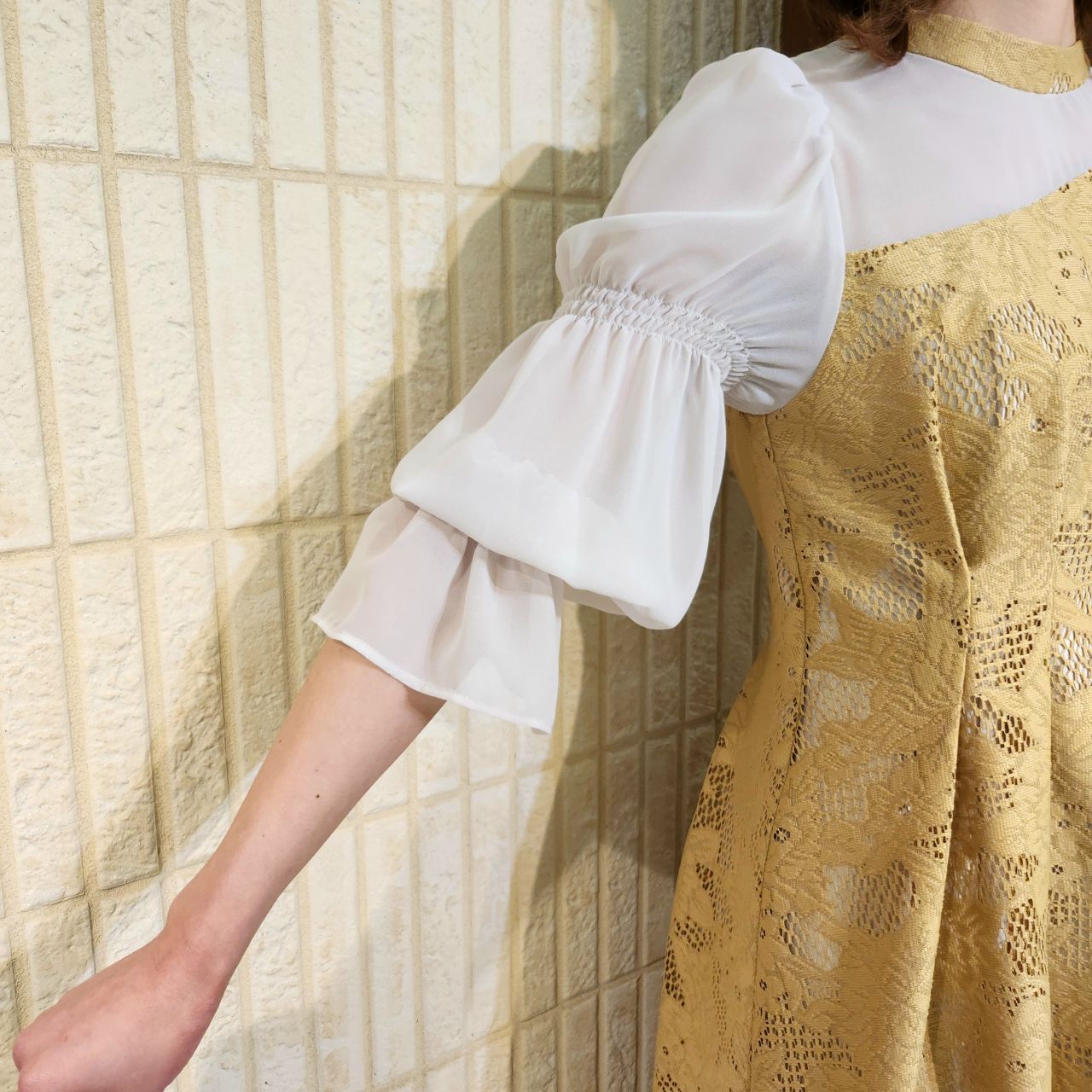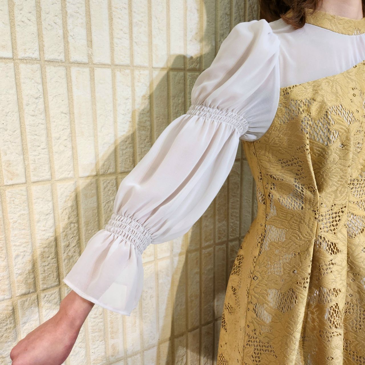 袖部分は安心感のあるゆったりとしたシフォン素材のシャーリングスリーブです