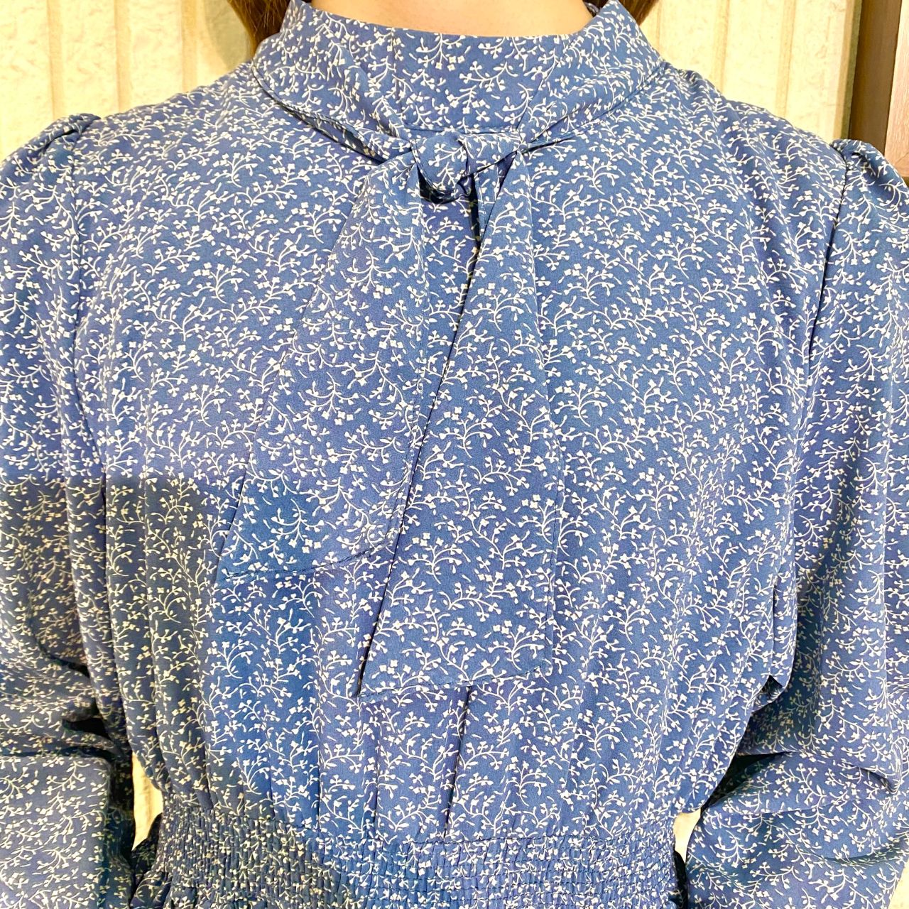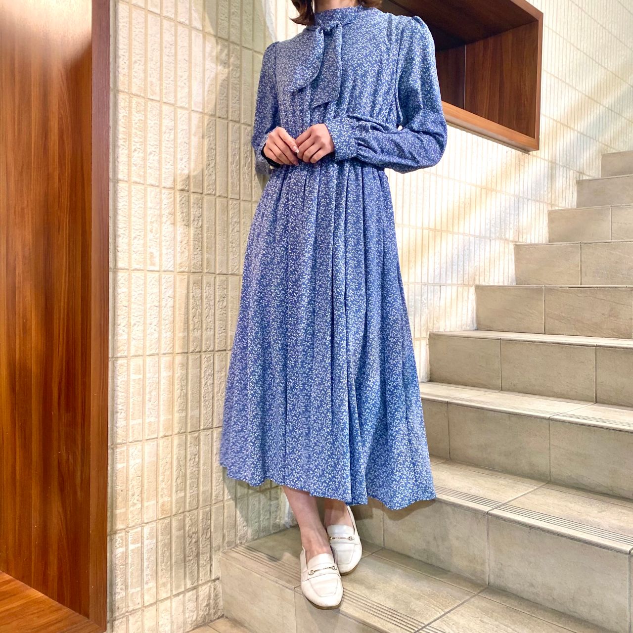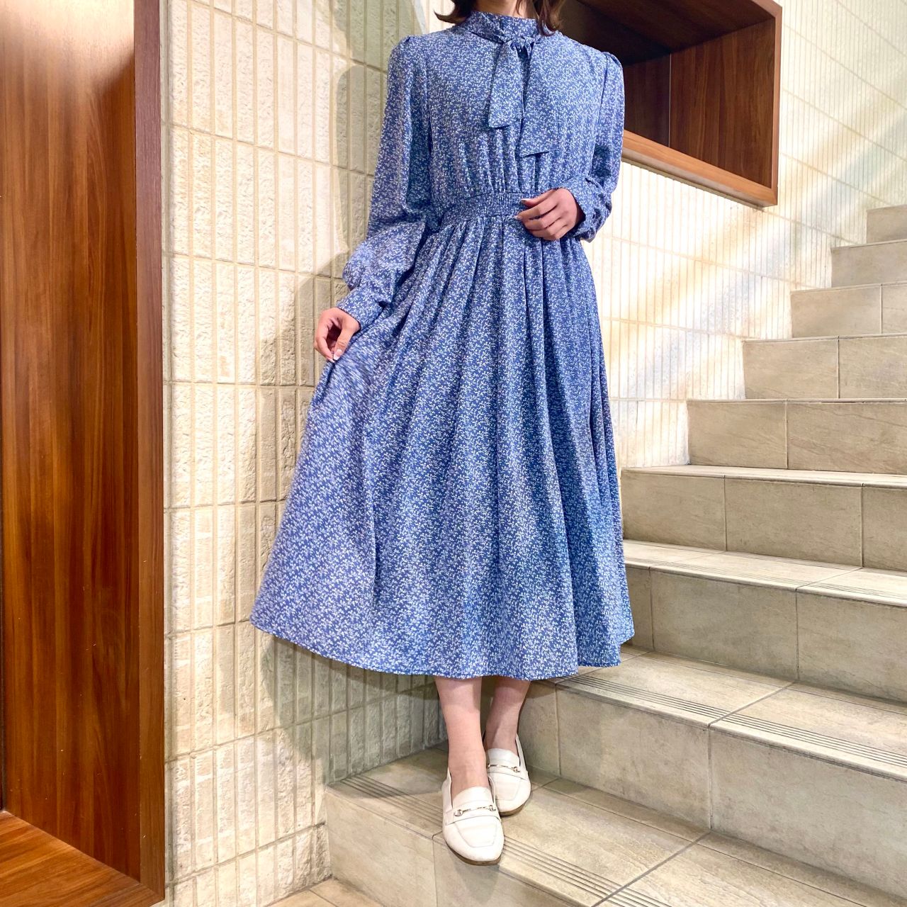 花柄ボウタイワンピース