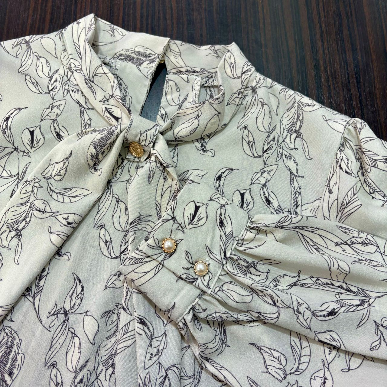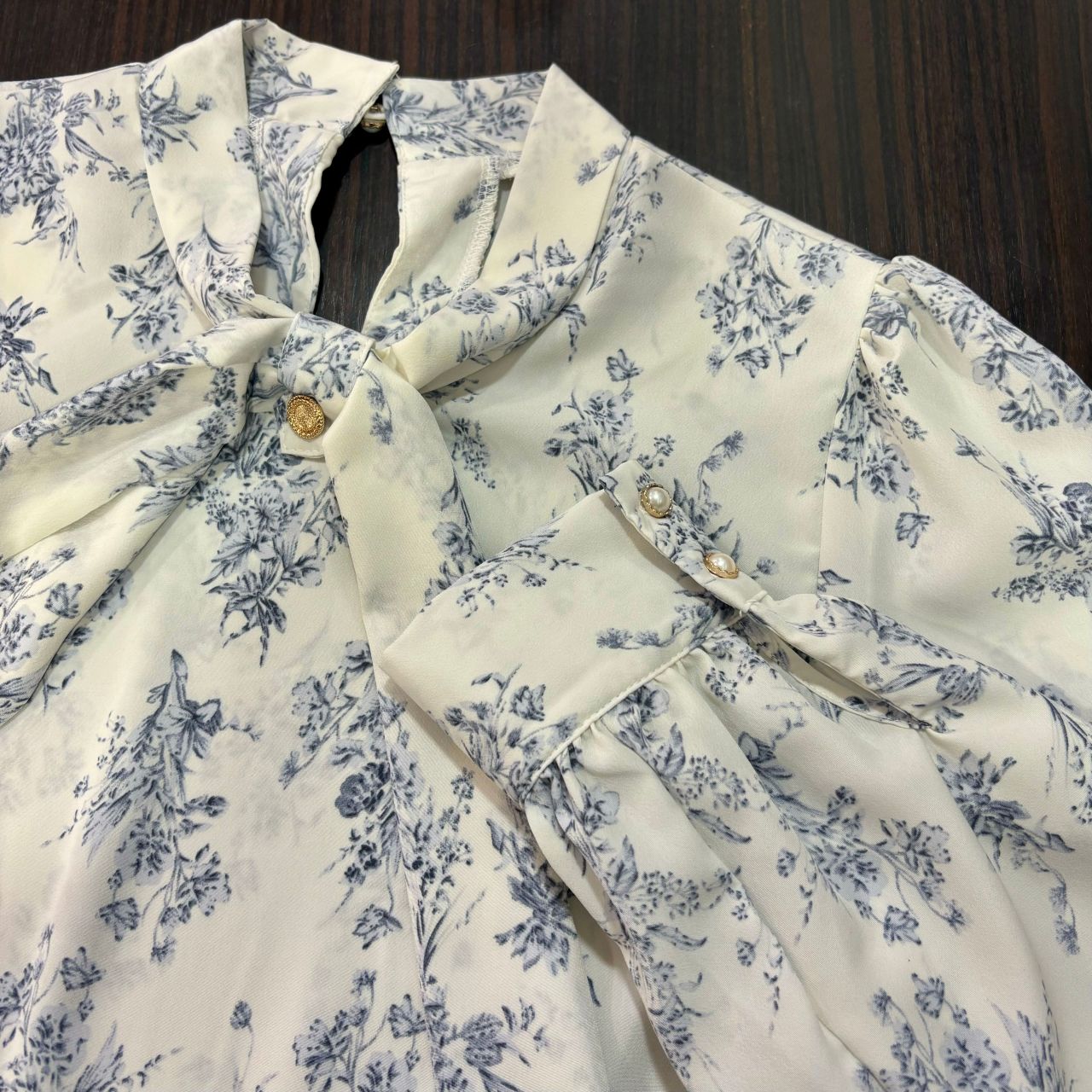 【装飾リボントワルド柄リボンタイブラウス】