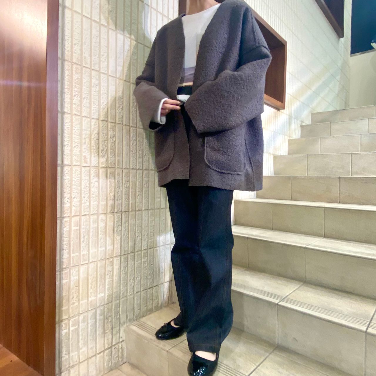 リバーシブルでボアを内側に着用して頂くと、きれいめな雰囲気になります♪