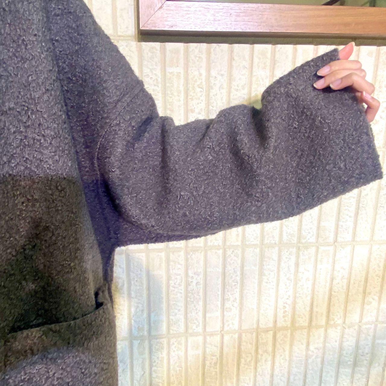 お袖は、落ち感のあるデザインでボリュームもあるので、ニットなどを着てもゴワゴワせずに着用して頂けます!