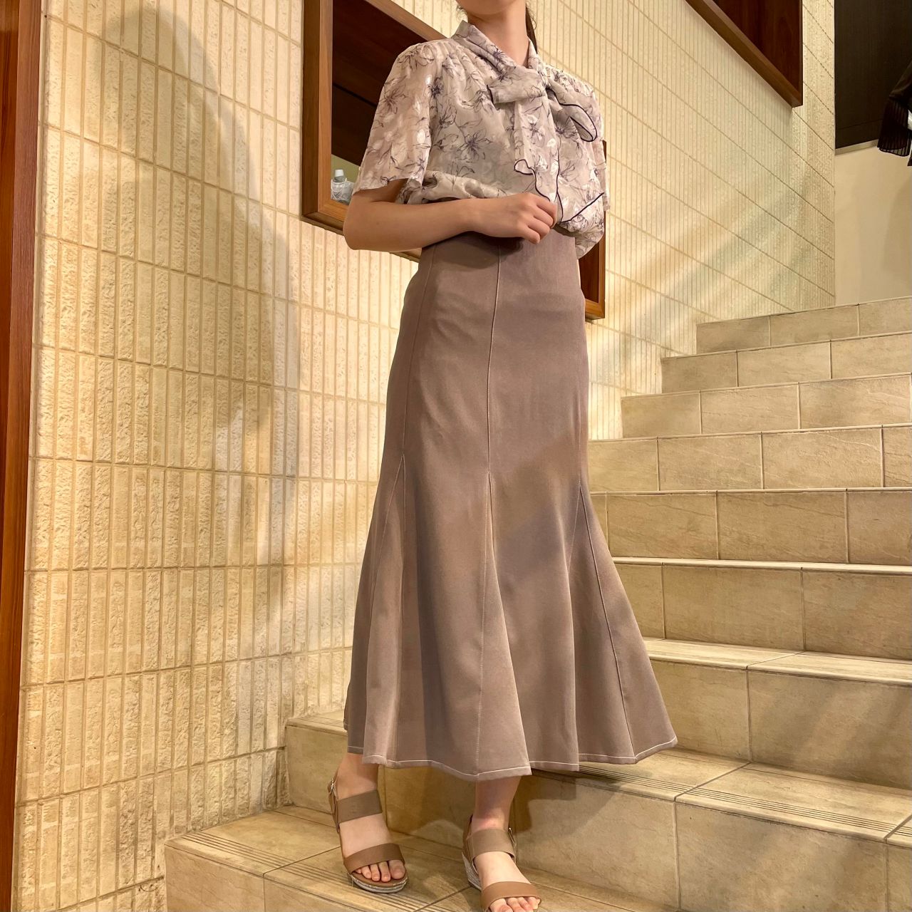 袖は透け感を基調とされており涼し気な印象を持たせつつ飾り過ぎないフェミニンな着こなしになります♪