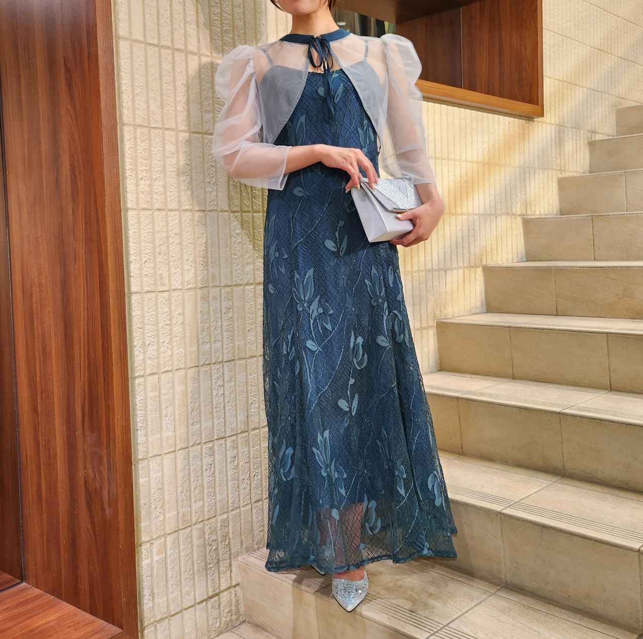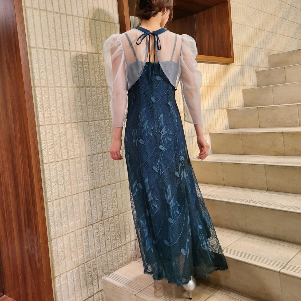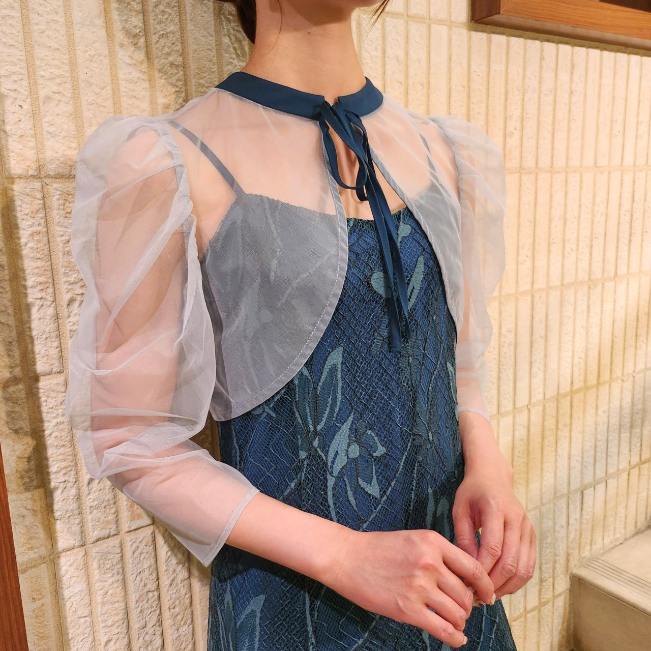 オーガンジーボレロ×キャミ総レースドレス