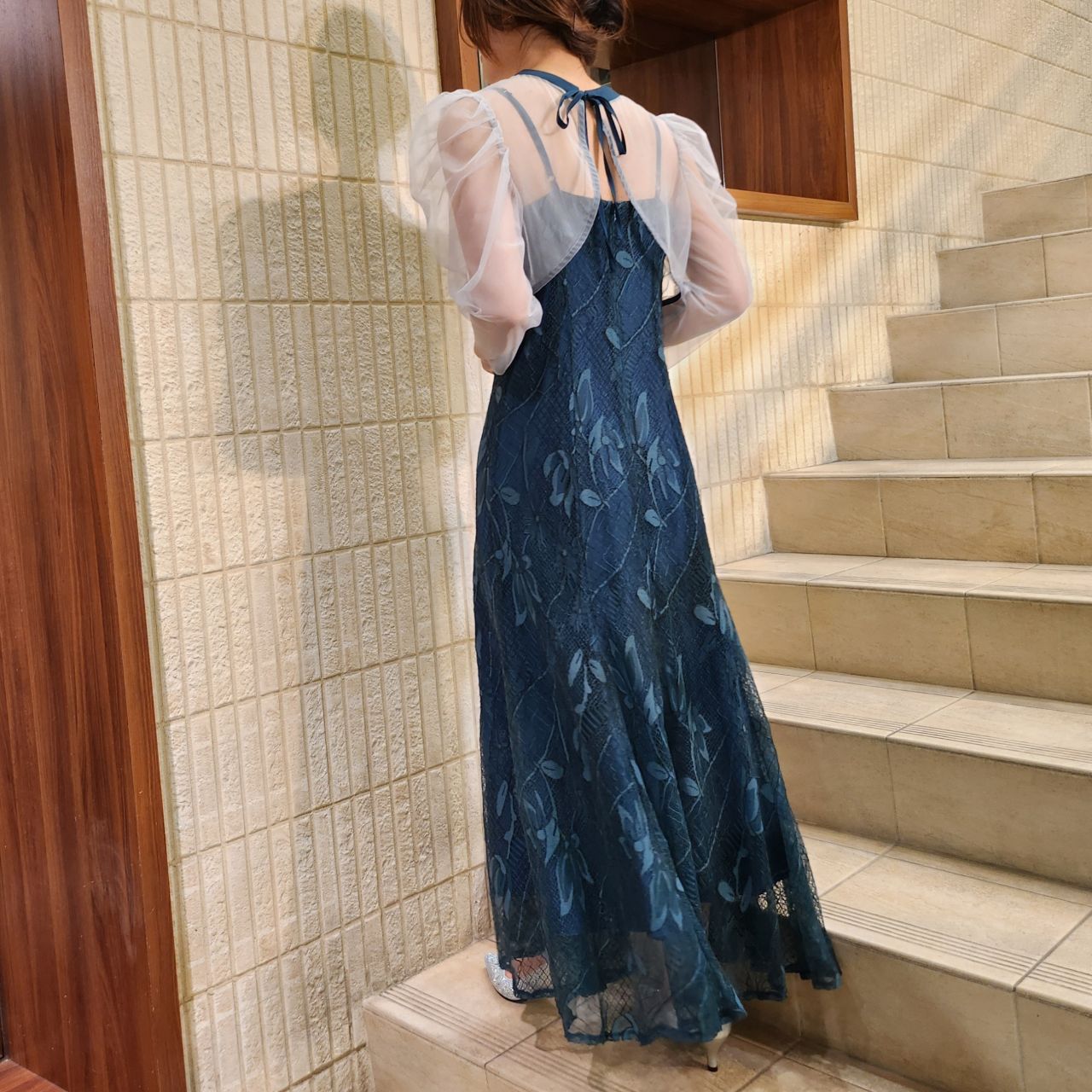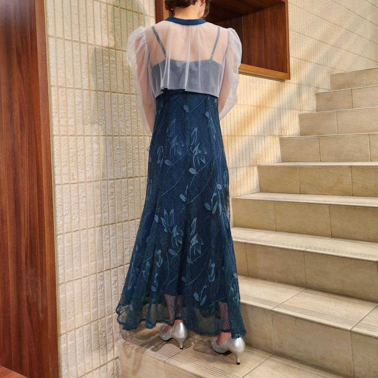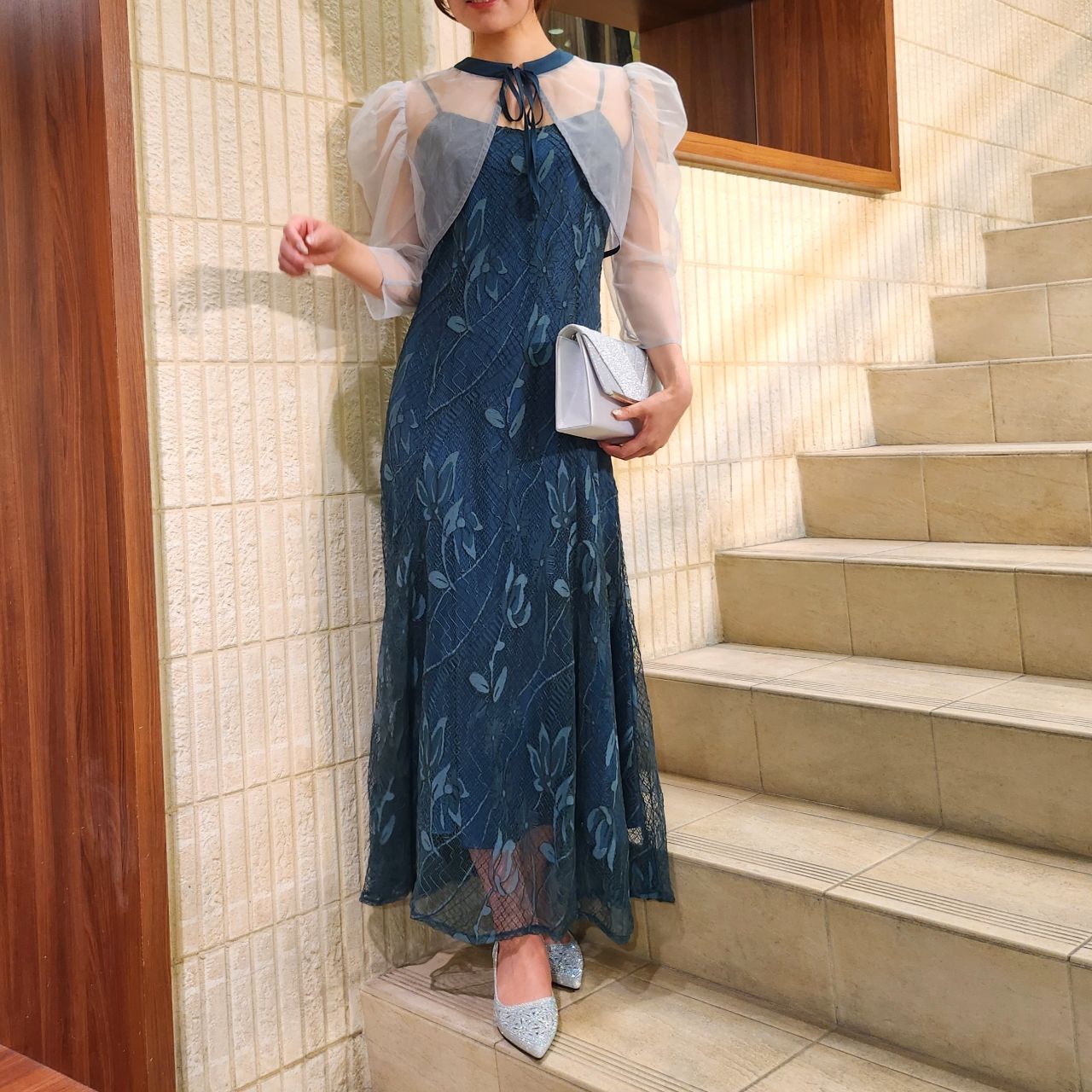 オーガンジーボレロ×キャミ総レースドレス