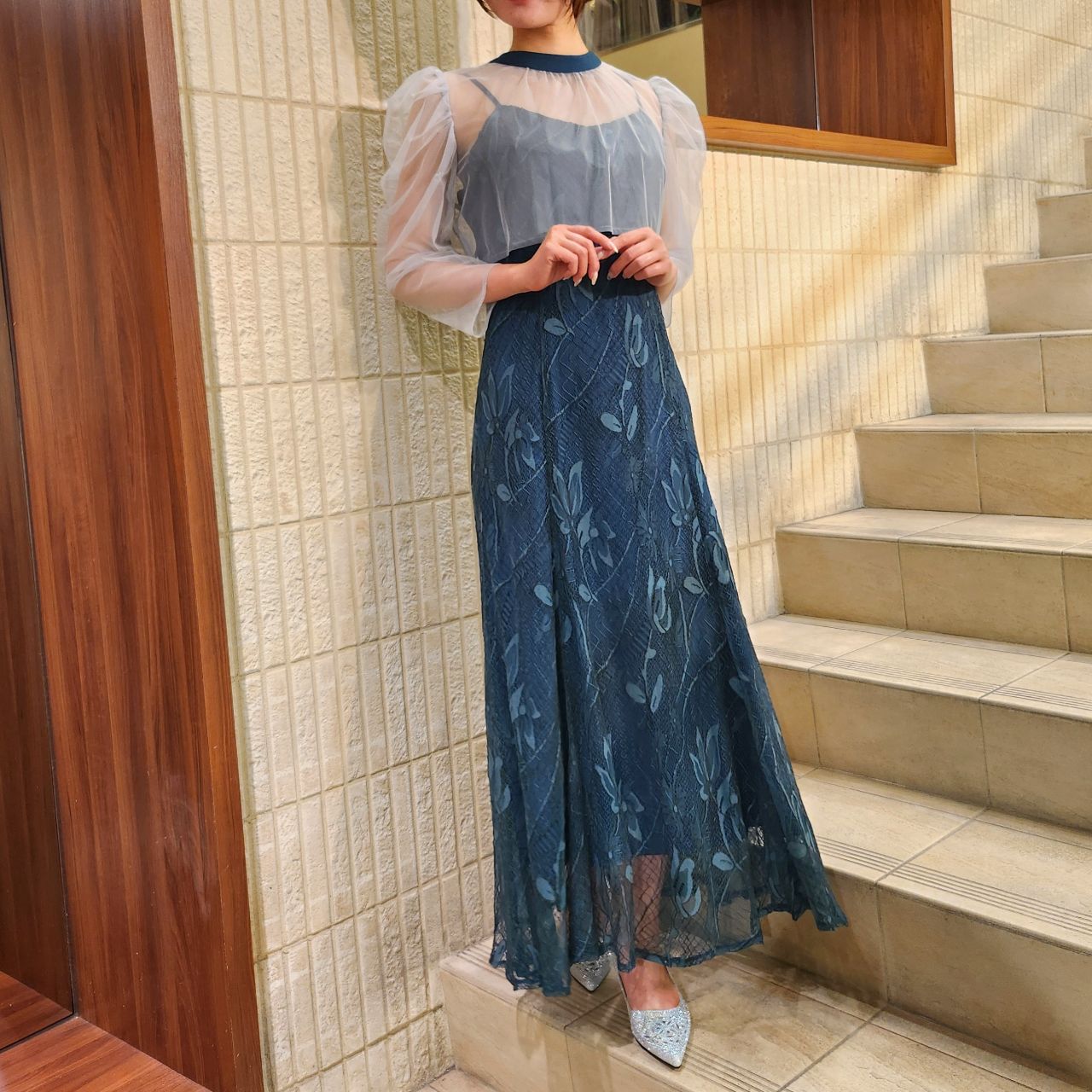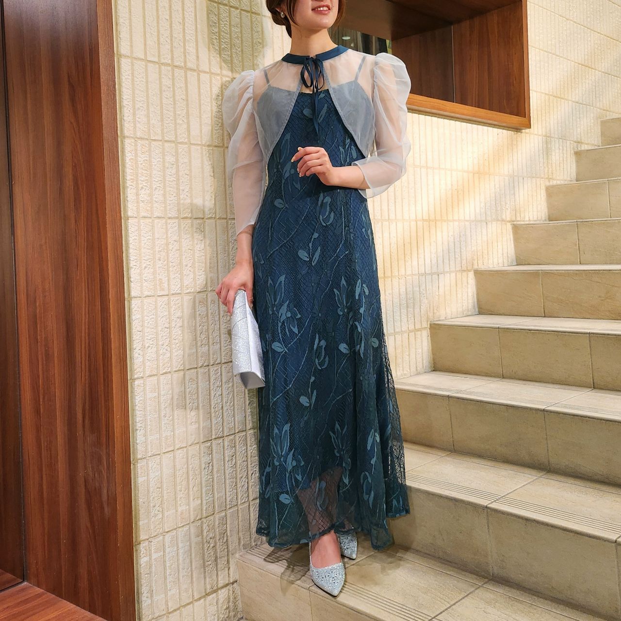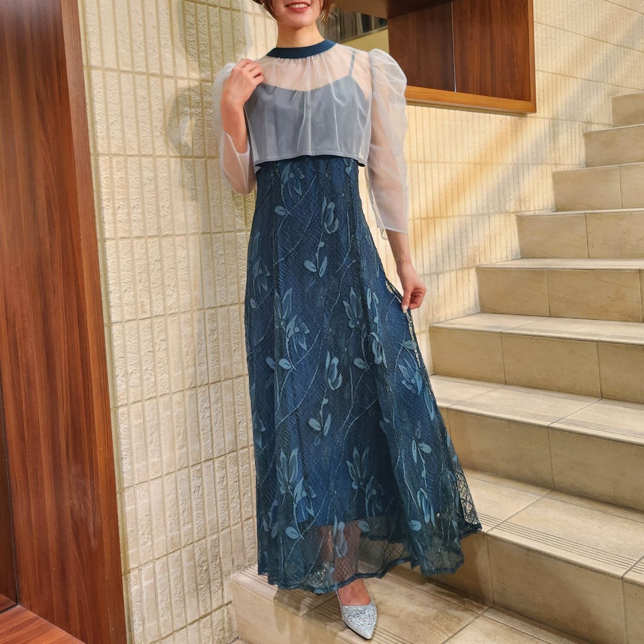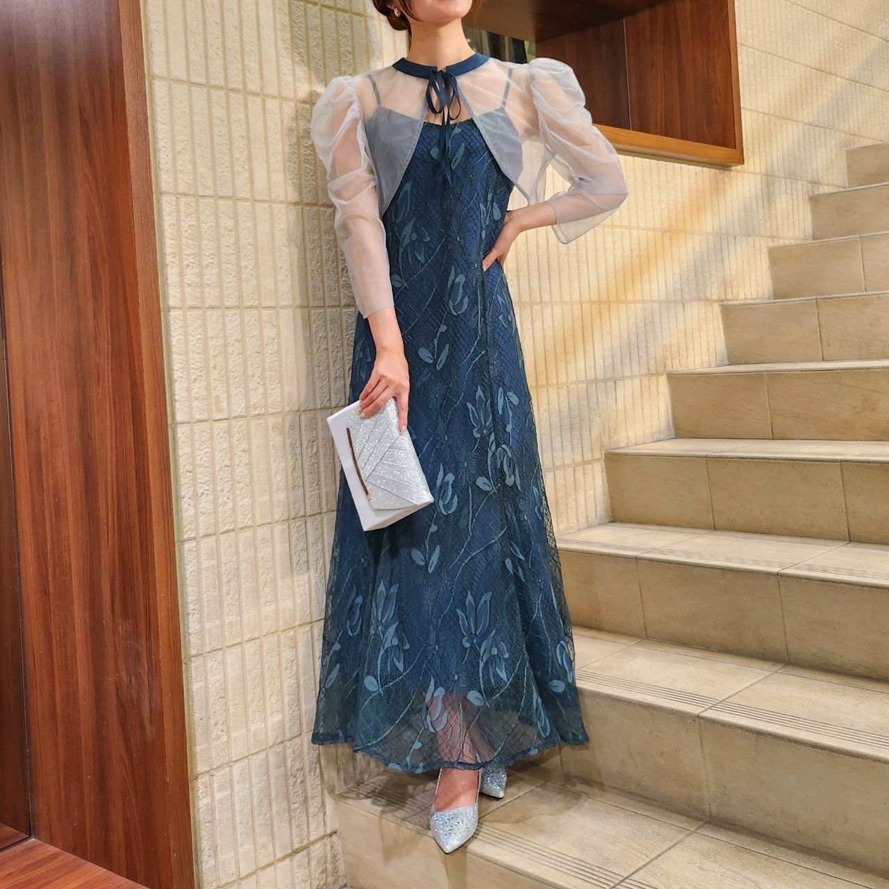 華やかで上品な美シルエットでオンナ度アップ♪オーガンジーボレロ×キャミ総レースドレス♪アストリア川越店