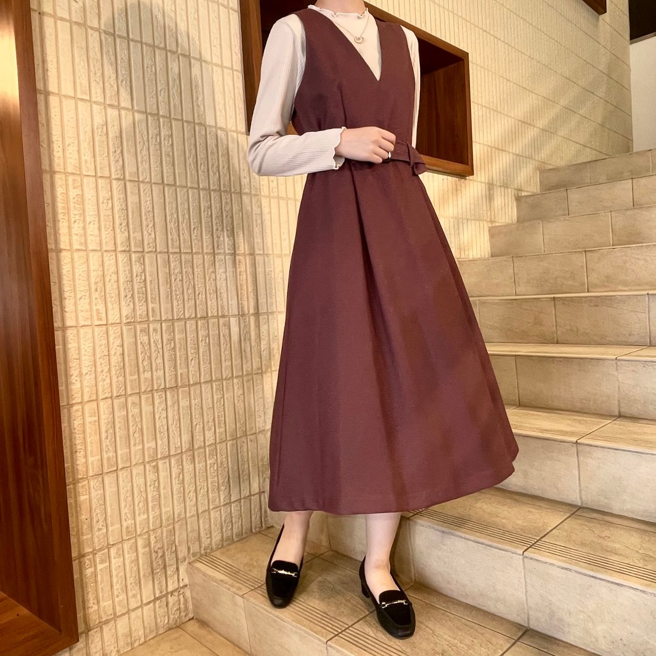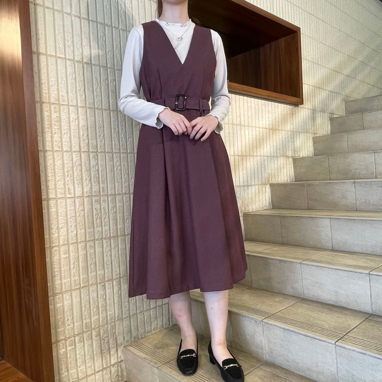 ふわりと広がるジャンパースカートは女性らしいエレガンスな印象も持たせてくれます♡