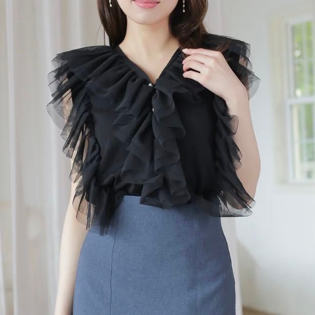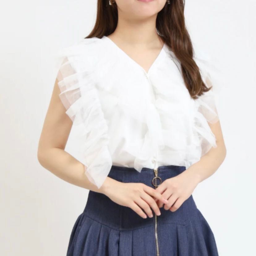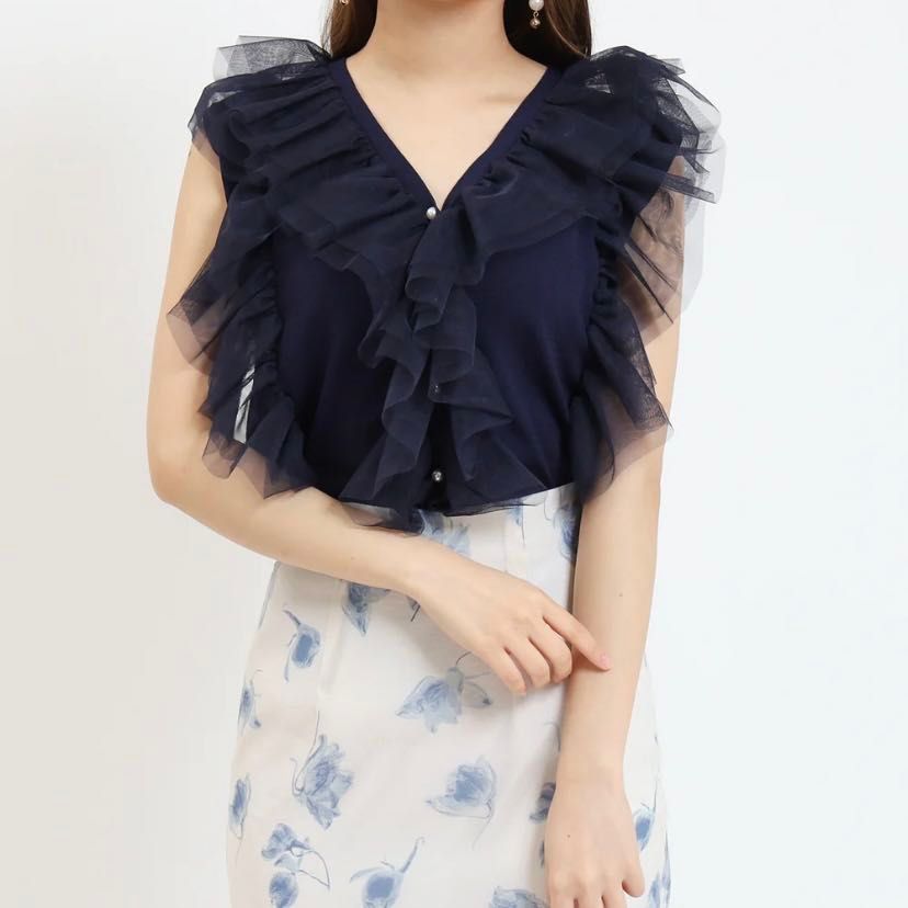 チュールフリルニットプルオーバー