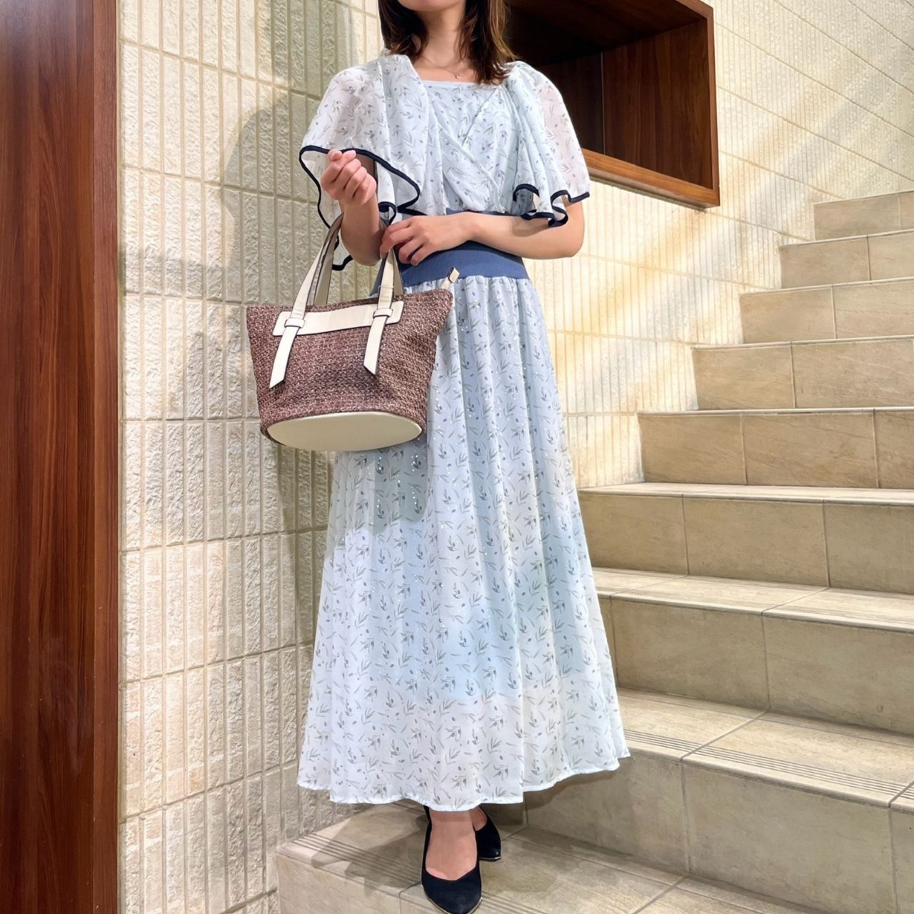パイピングとラメが印象的な清楚でエレガントなお出かけコーデです♡