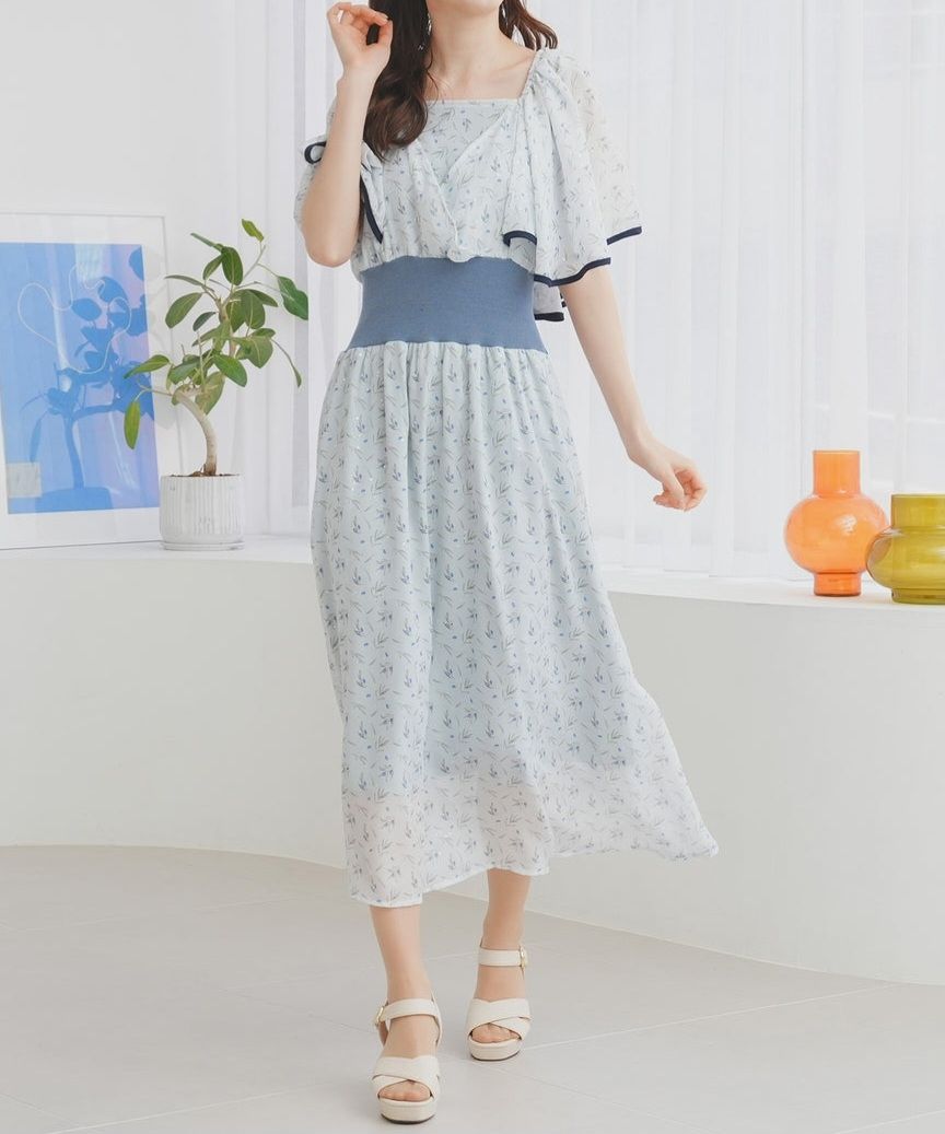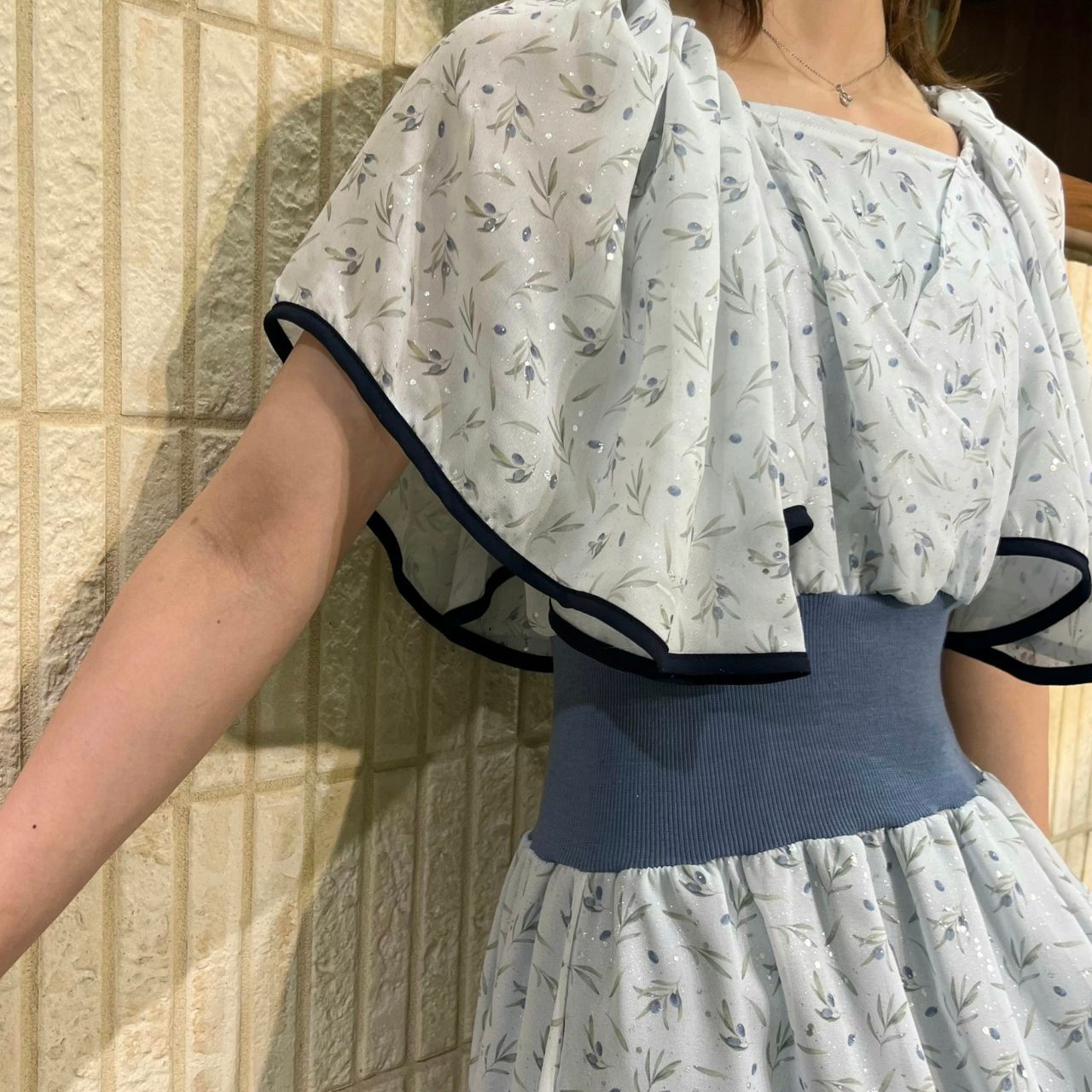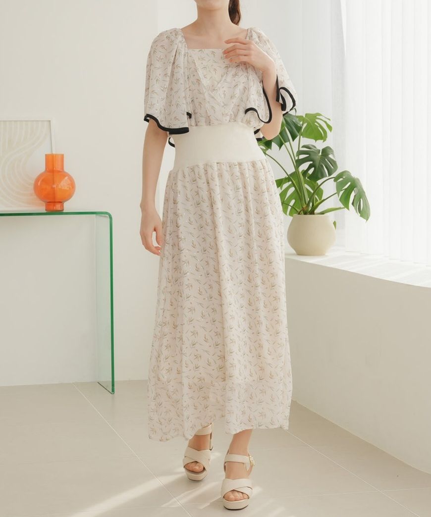オリーブ柄パイピングワンピース