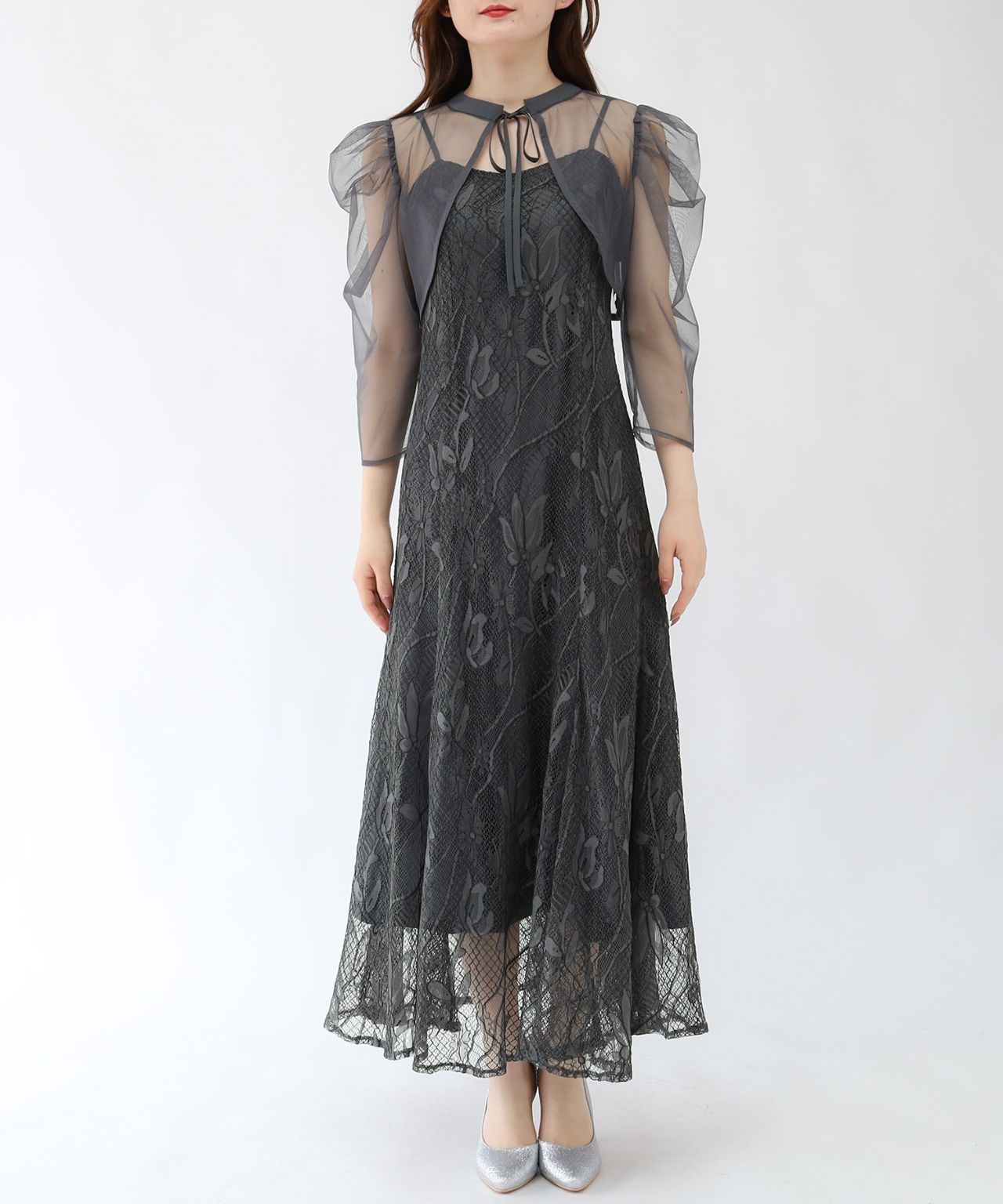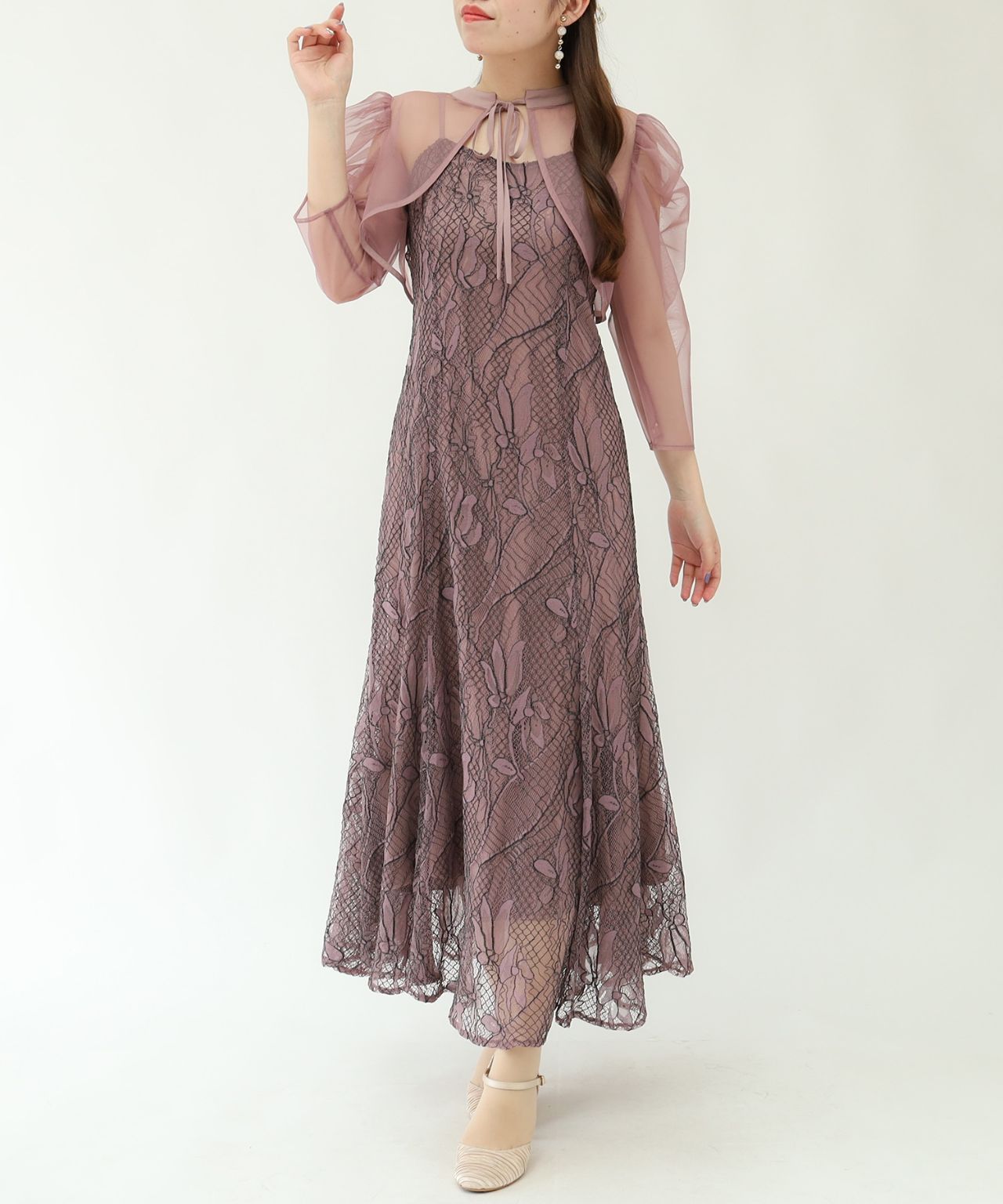 華やかで上品なレースで大人の女性に♪オーガンジーボレロ×キャミ総レースドレス♪アストリア川越店
