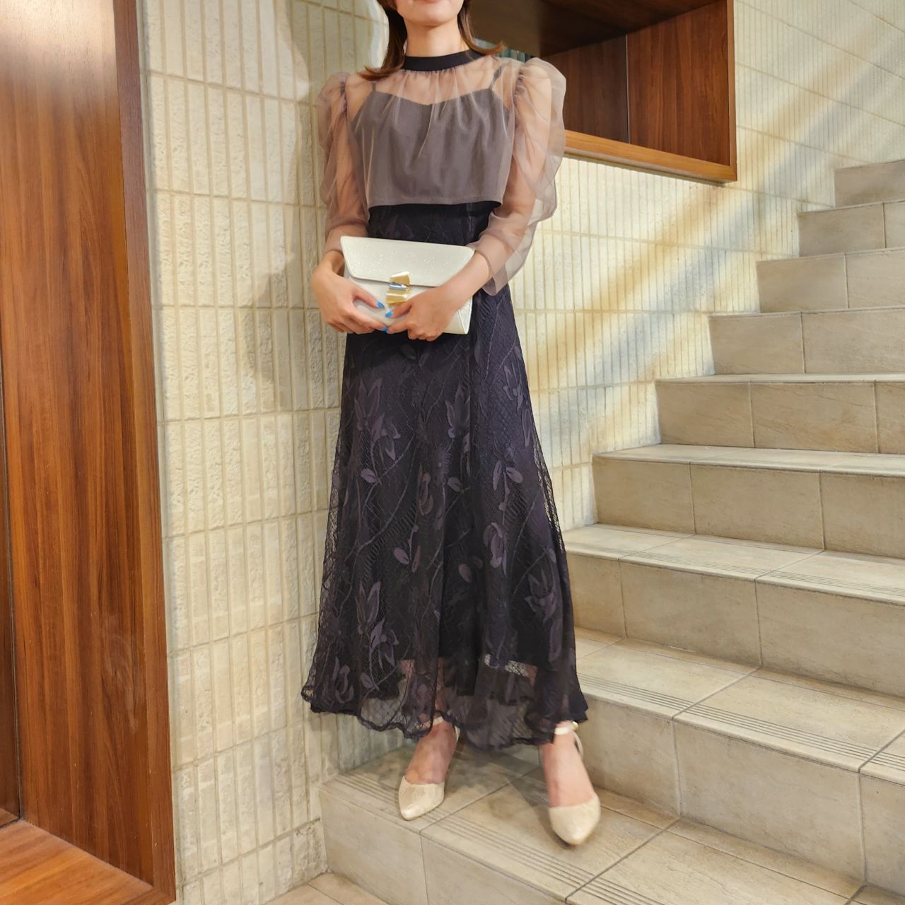 オーガンジーの透け感と、目を惹く美ラインが大人の雰囲気を引き立たせてくれる1着です♪