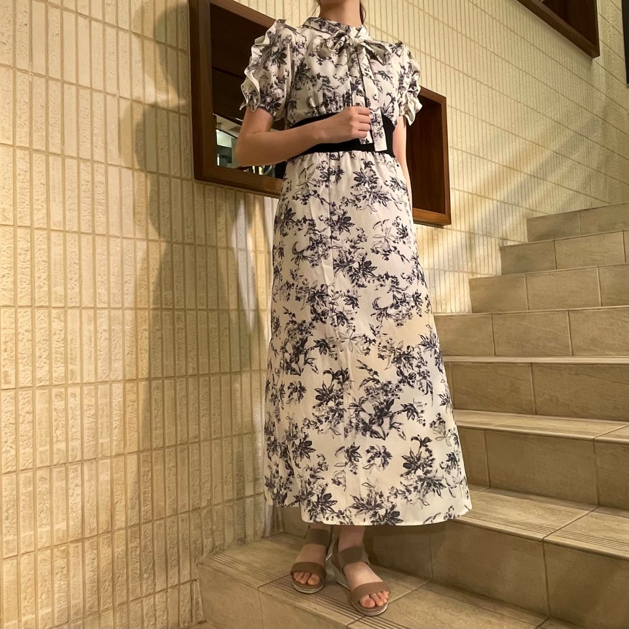 柔らかいカラーと上品な花柄で大人フェミニンにまとめてくれるワンピースです♪