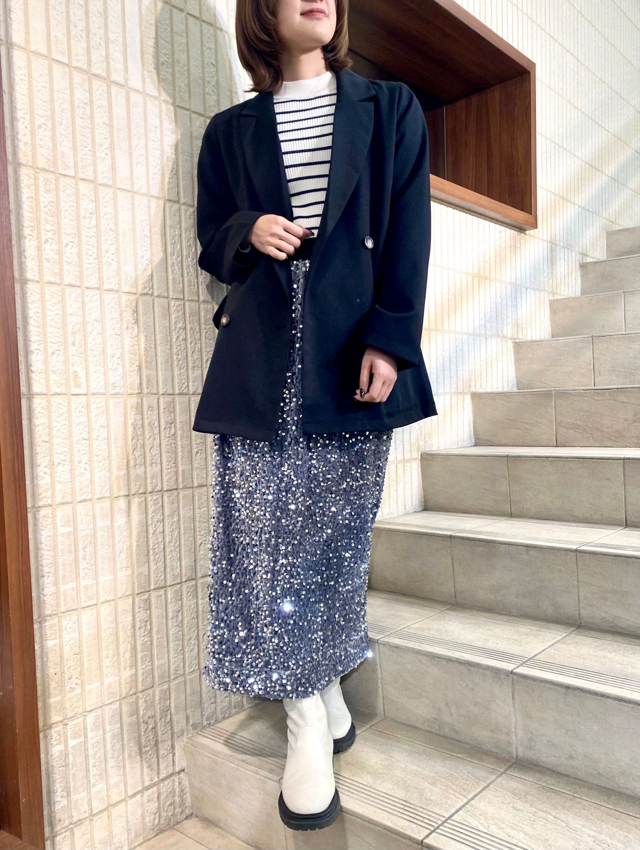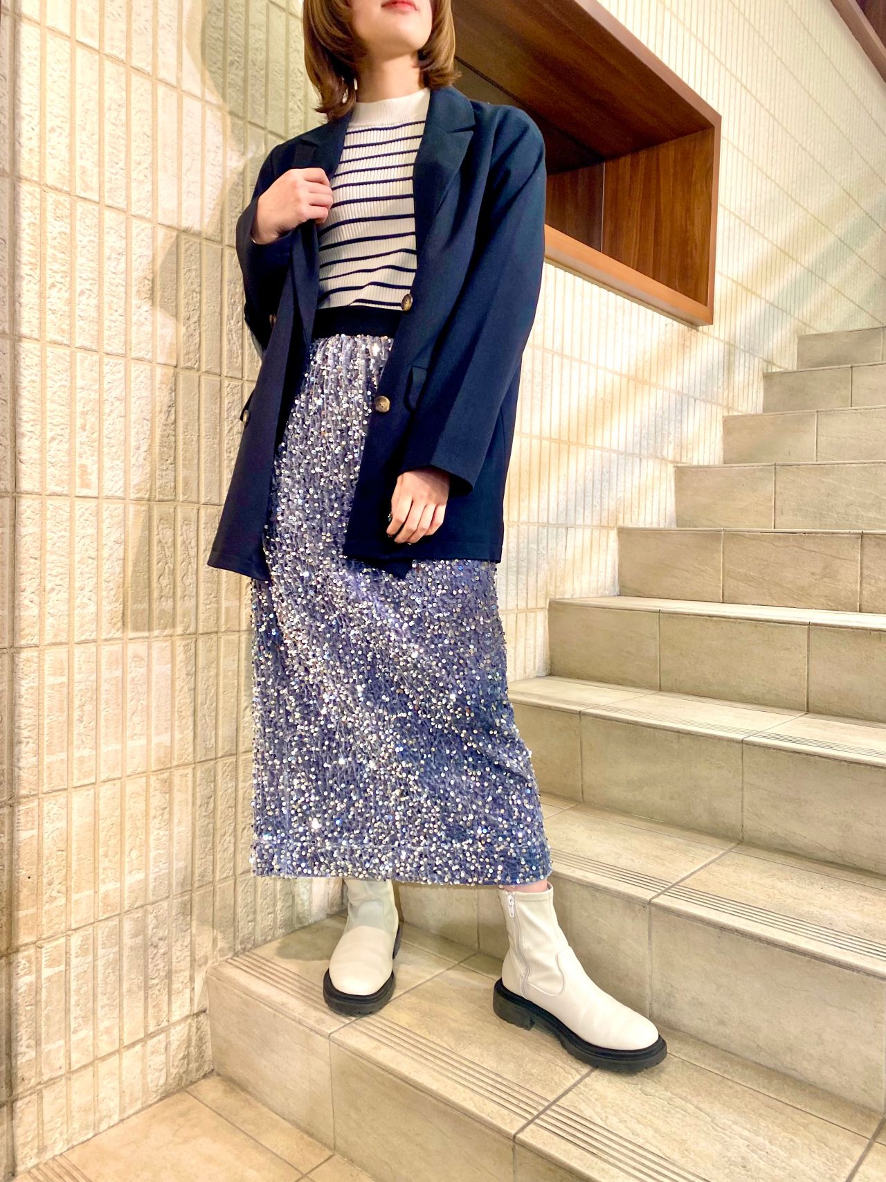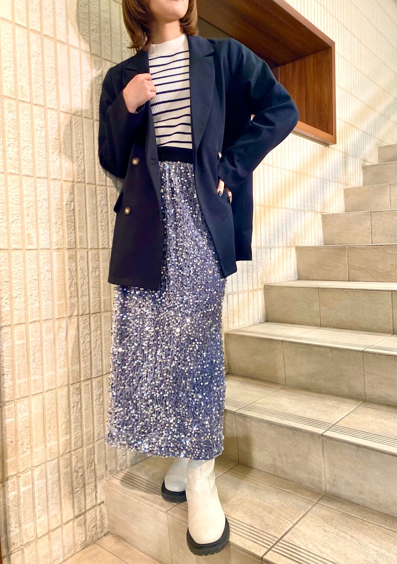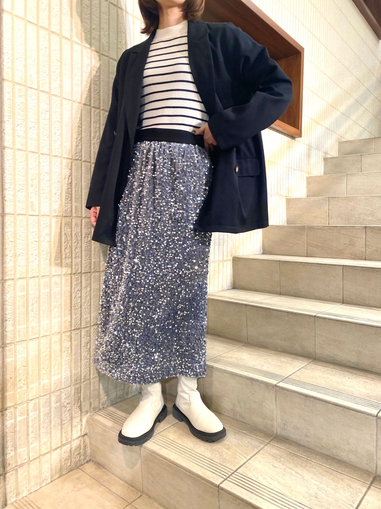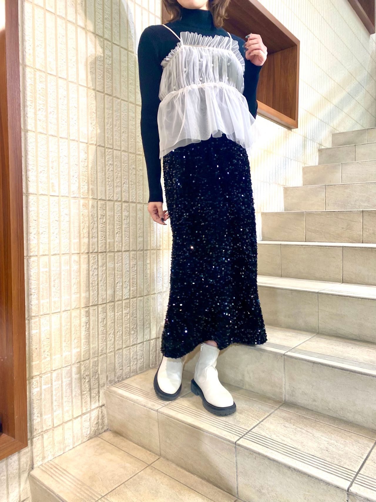 スパンコールスカートの系統別コーデを