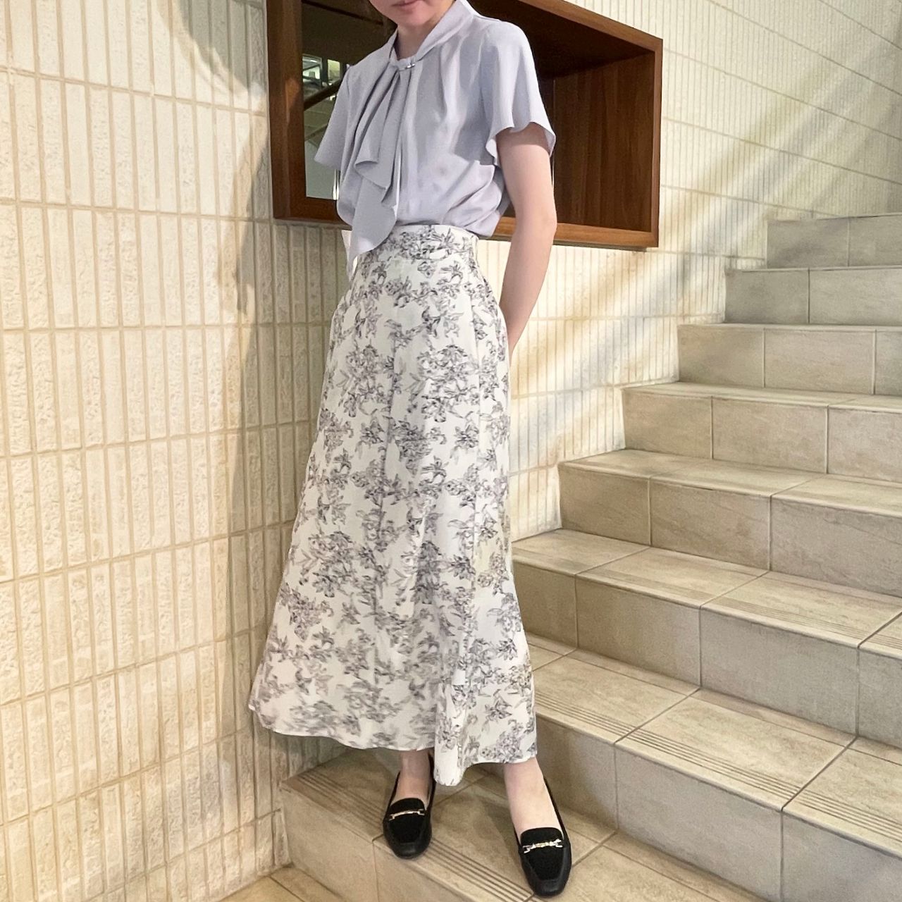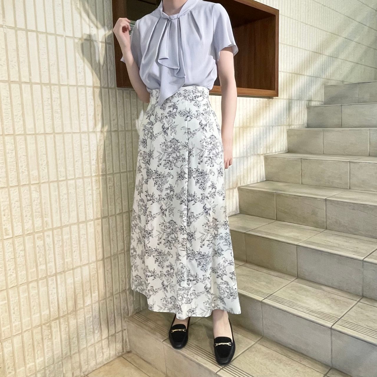 ブラウスと合わせると上品な印象に!