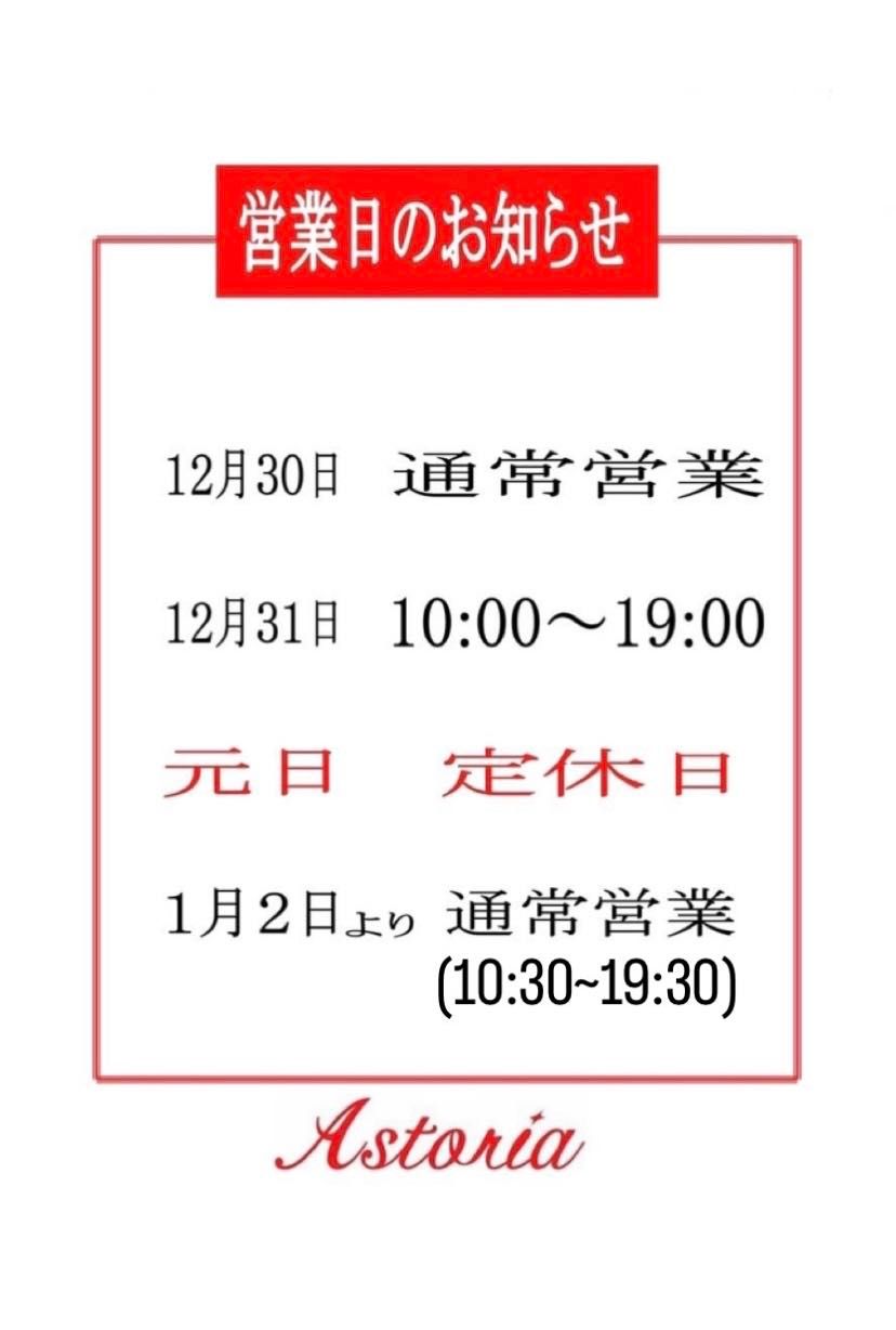 年末年始の営業時間のお知らせ♡アストリア川越店