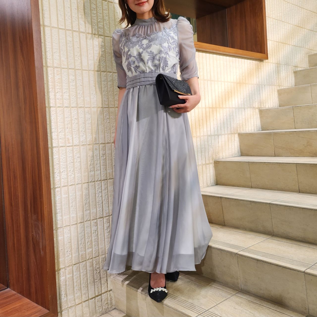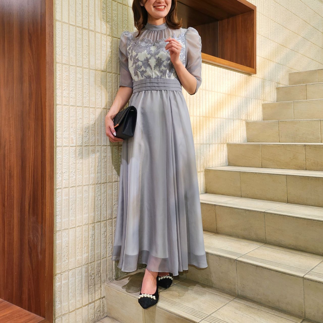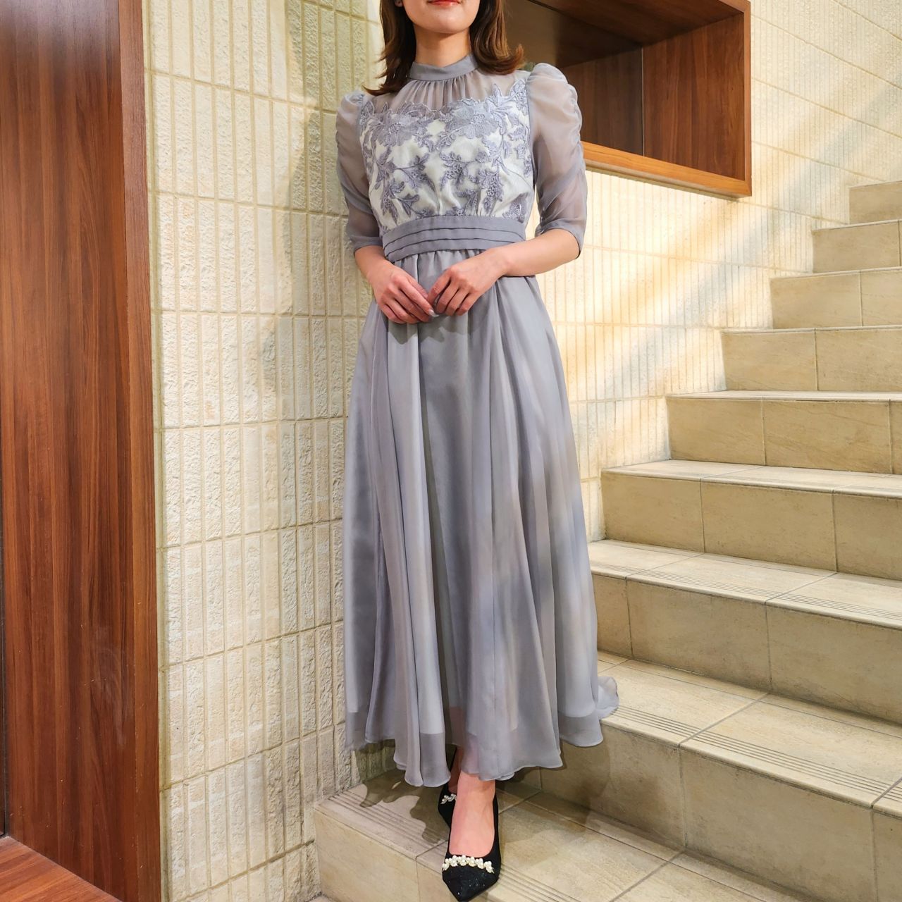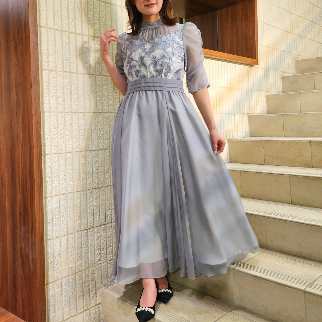 ナチュラルでモダンな雰囲気に♪大人気フラワー刺繍ワンピースドレス♪アストリア川越店