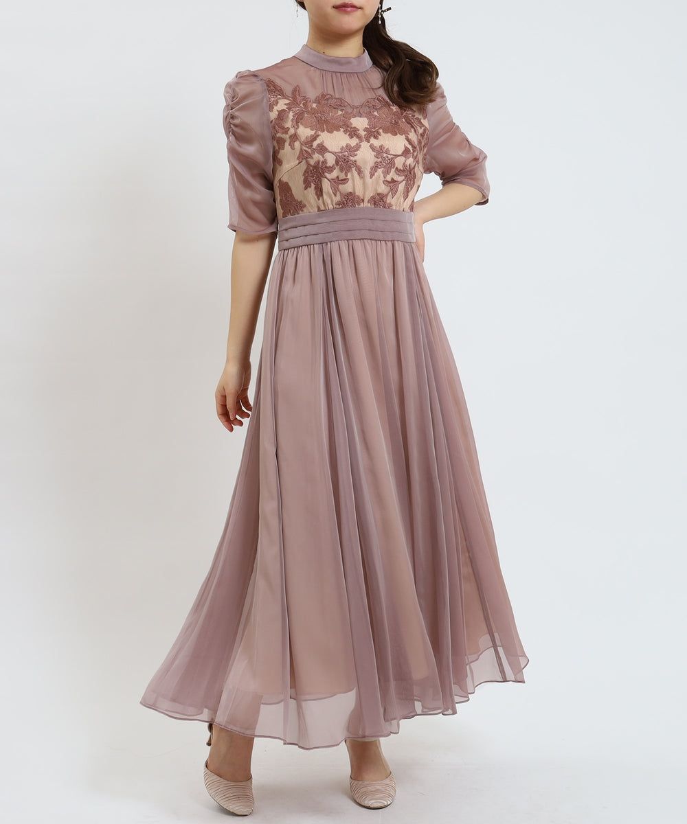 フラワー刺繍ワンピースドレス