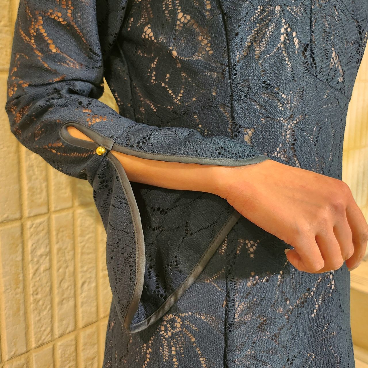 いやらしさの無い程よい肌見せと、フレア袖が華やかで