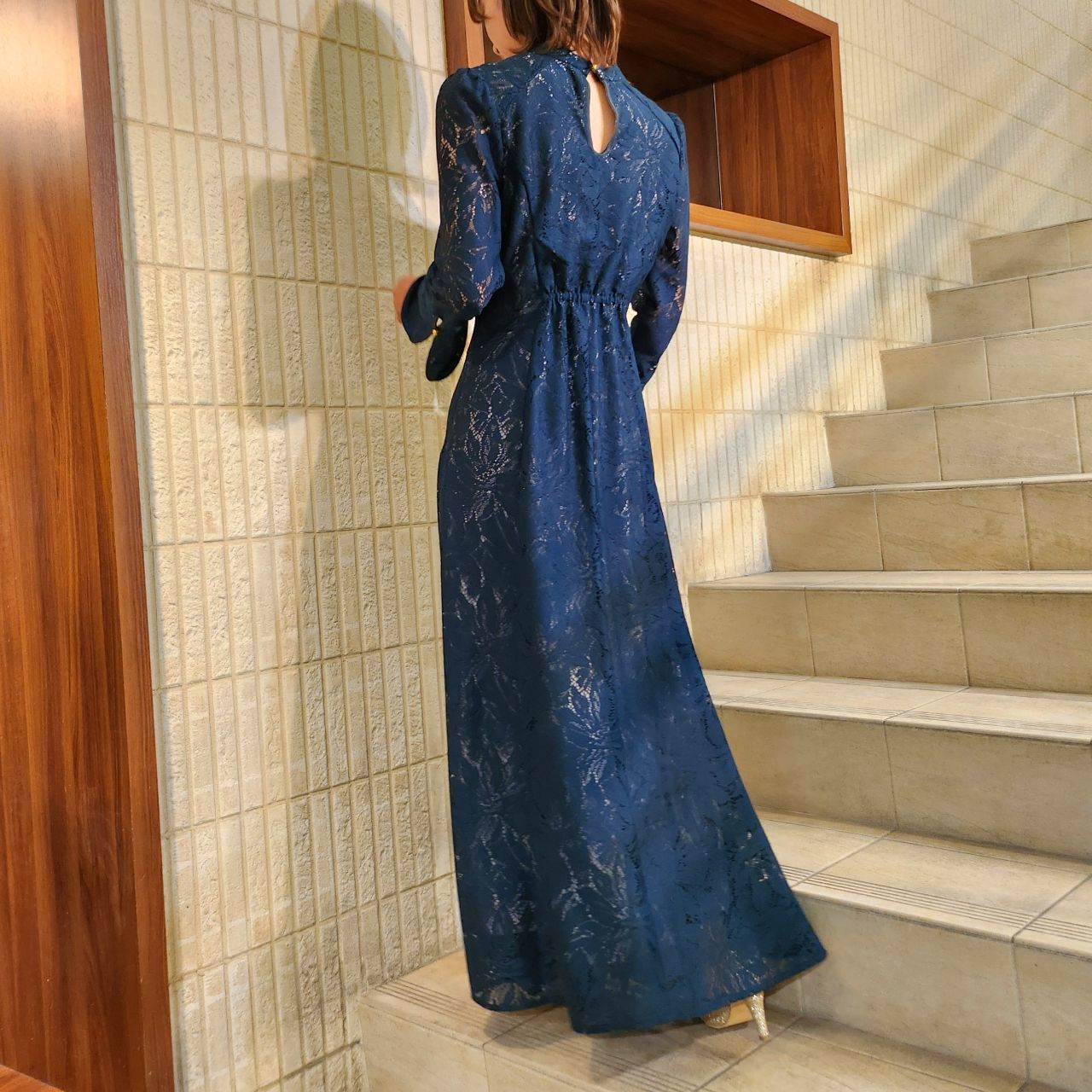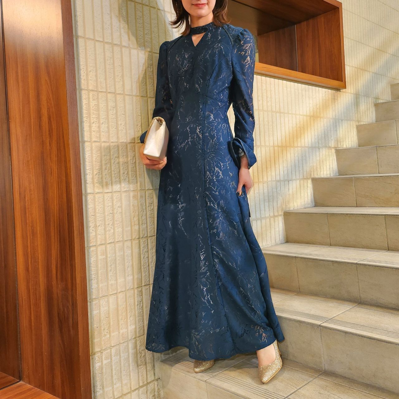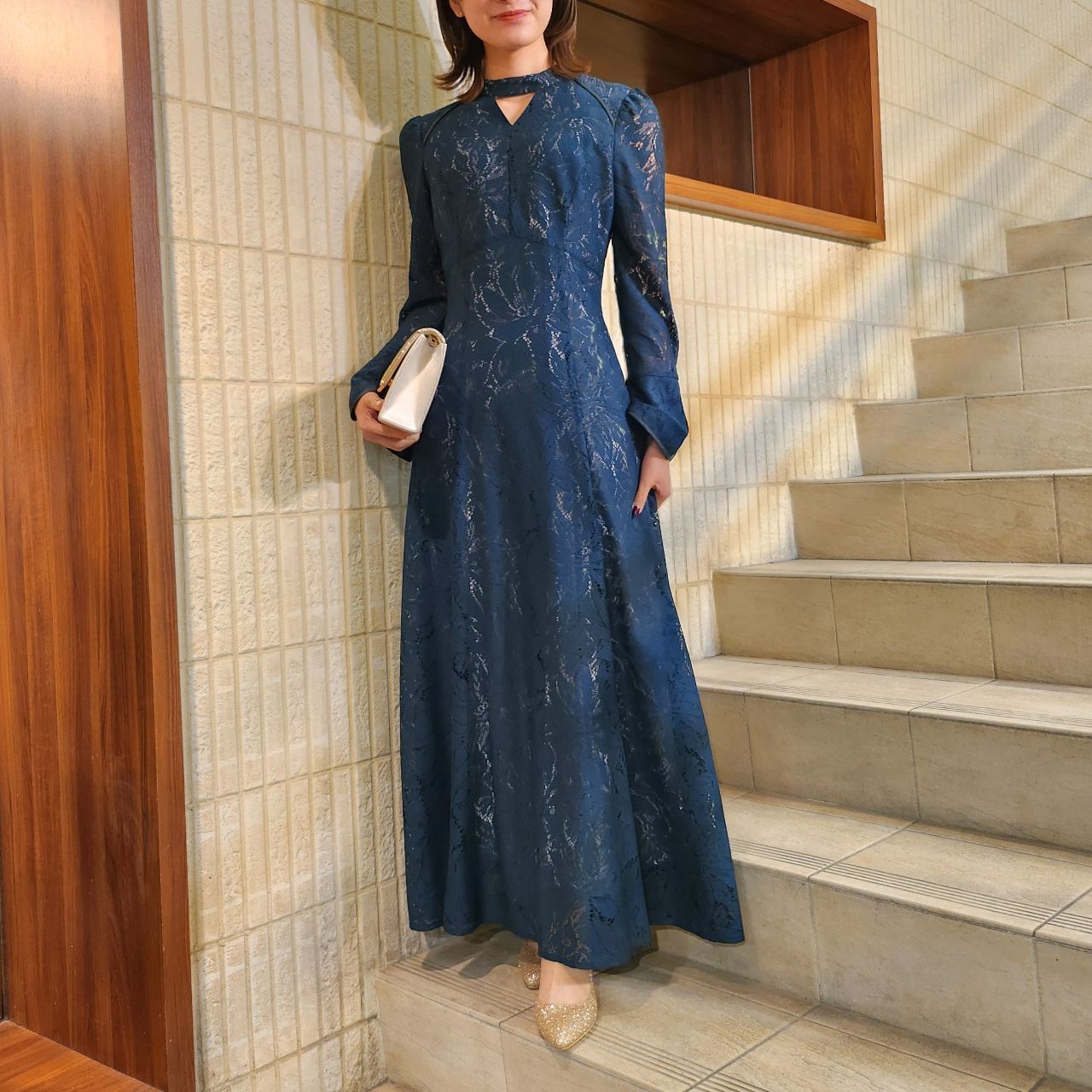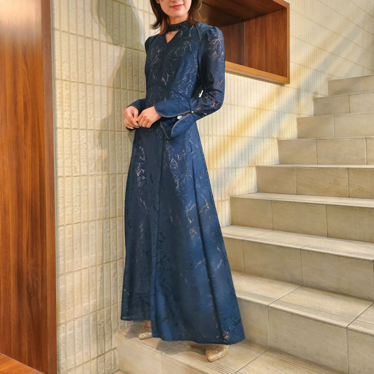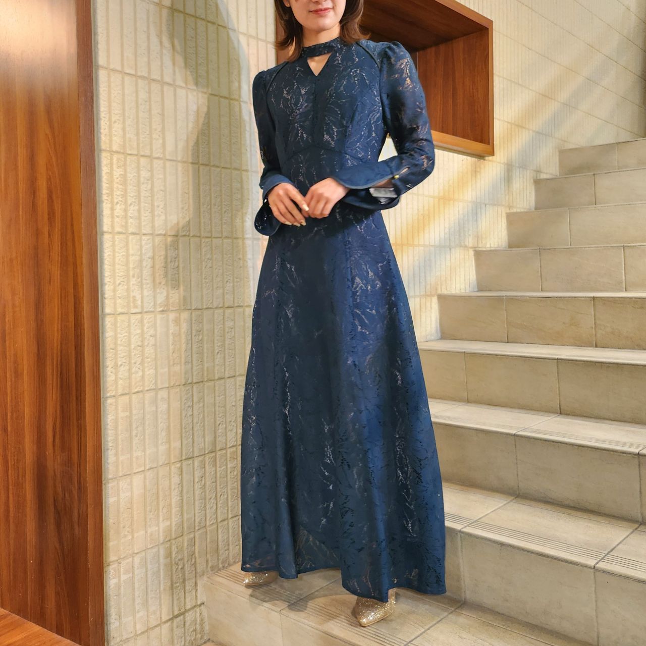 長袖でロング丈、更に落ち着いたカラー展開なので、大人っぽいドレスを探している方には特にお勧めのドレスです♪
