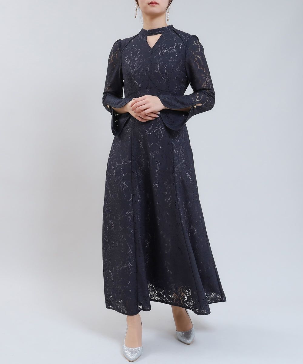 贅沢に全体にレースを使用した存在感のあるフォーマルドレスです♪