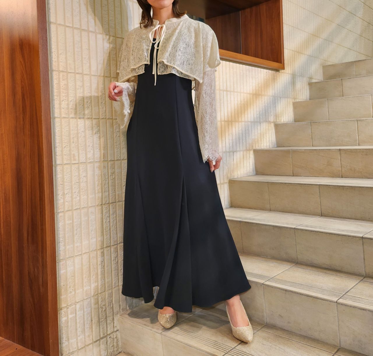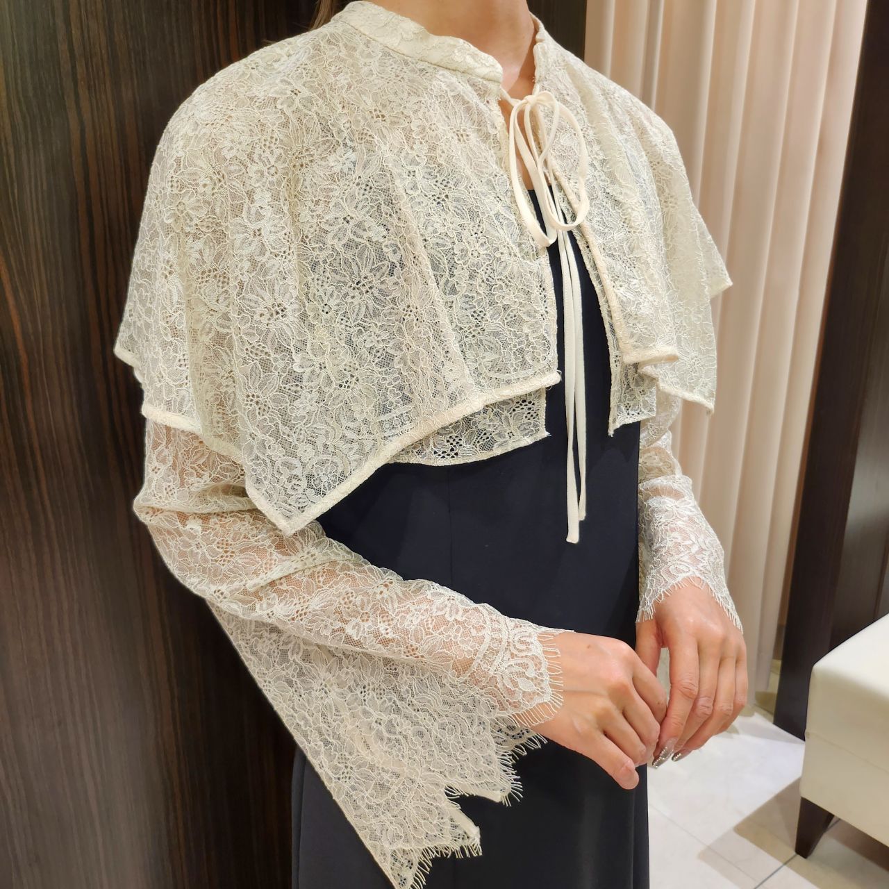 ケープはレースを重ねることでボリューム感が出て、綺麗なシルエットを作り出すので、可憐で品のある女性を演出してくれます♪