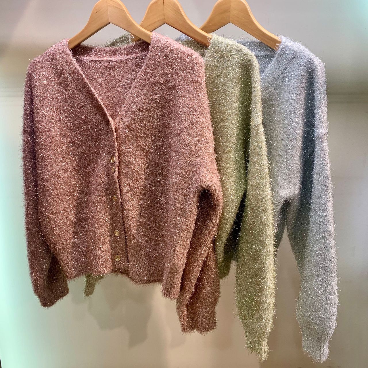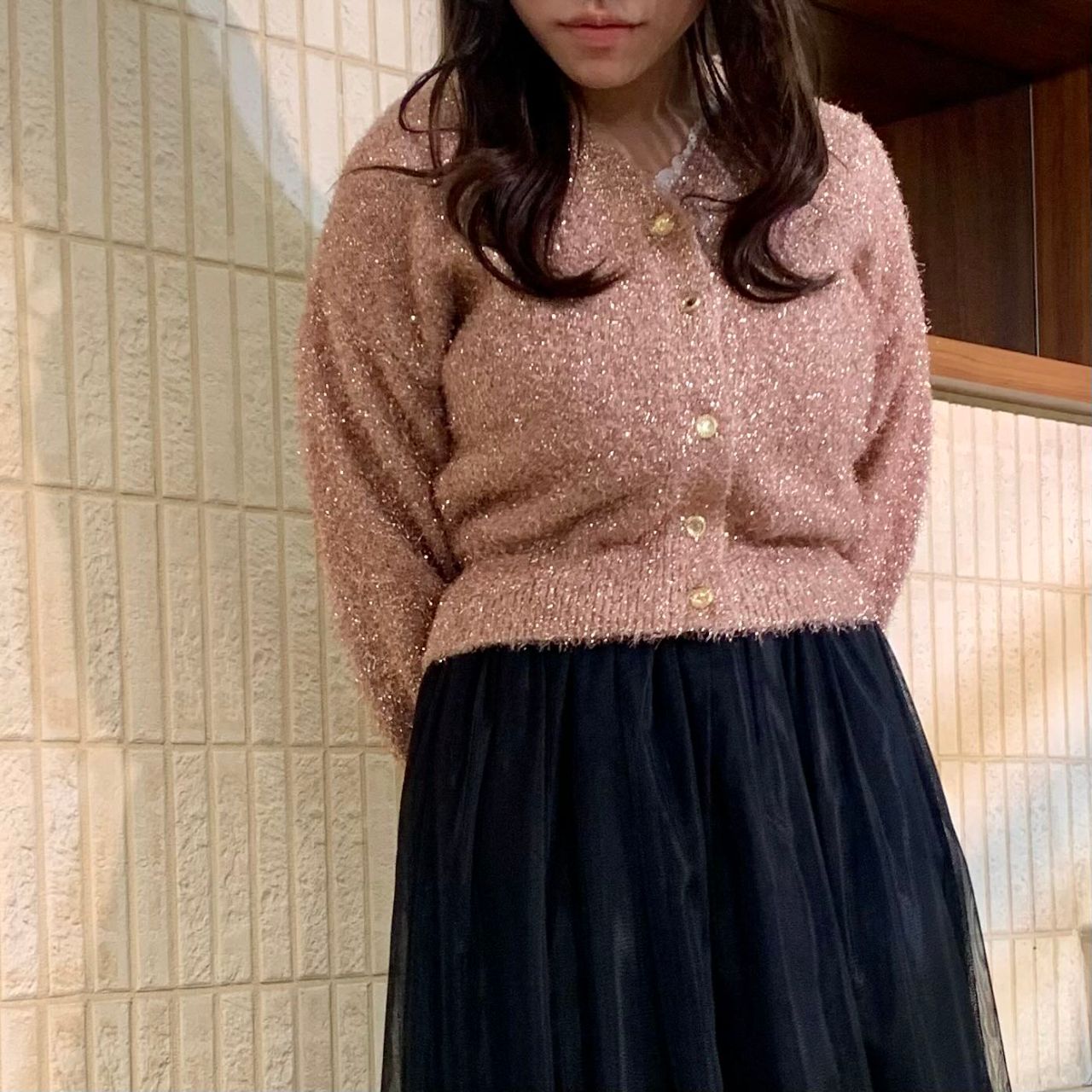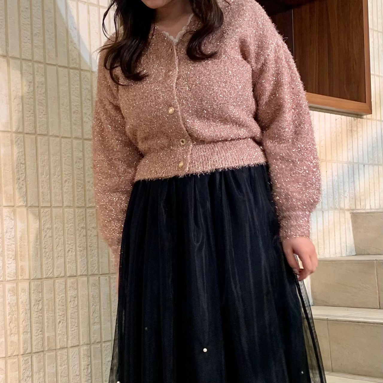 滑らかなフェザーヤーンとラメ糸で仕上げた高見えする1枚となっております!