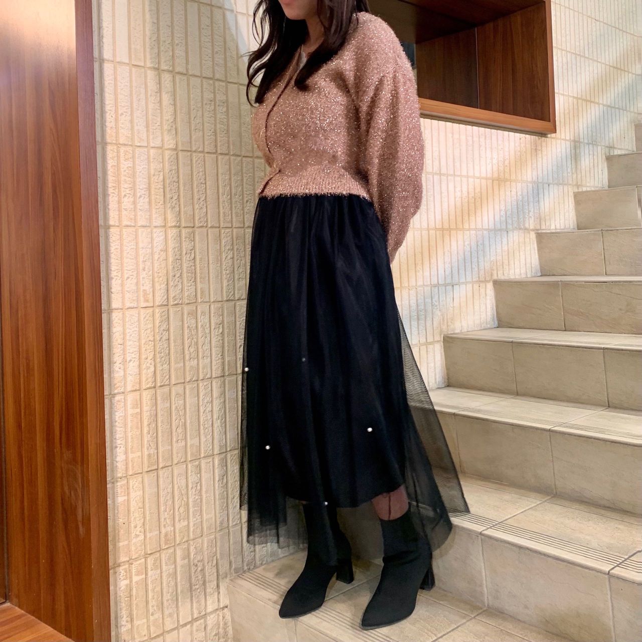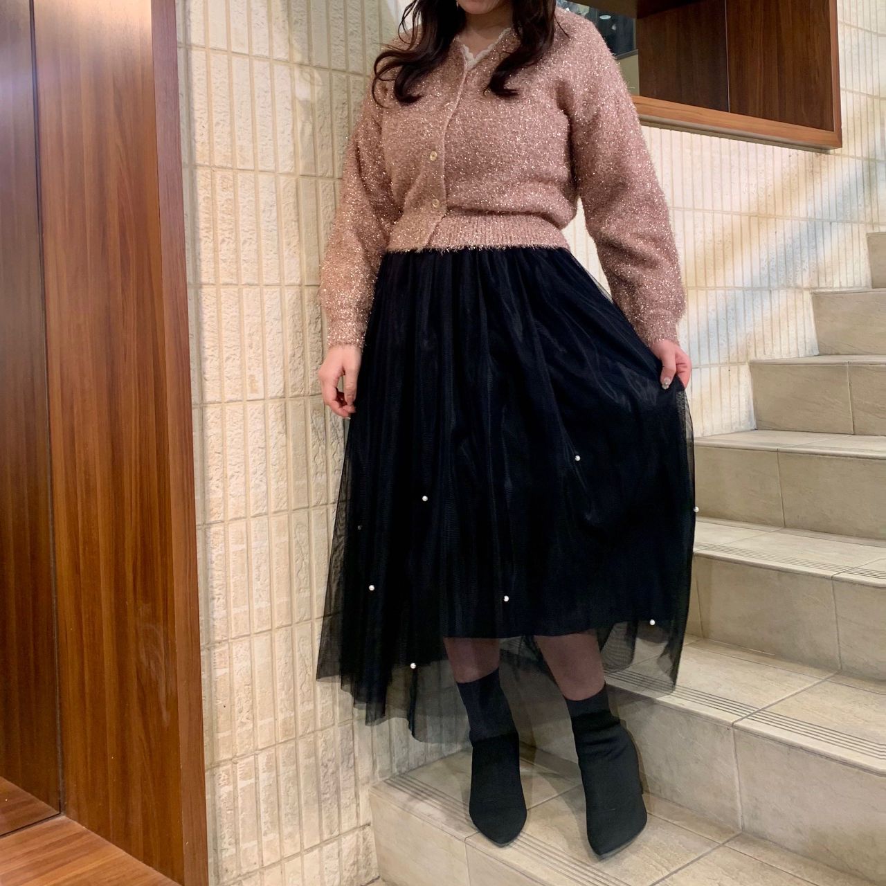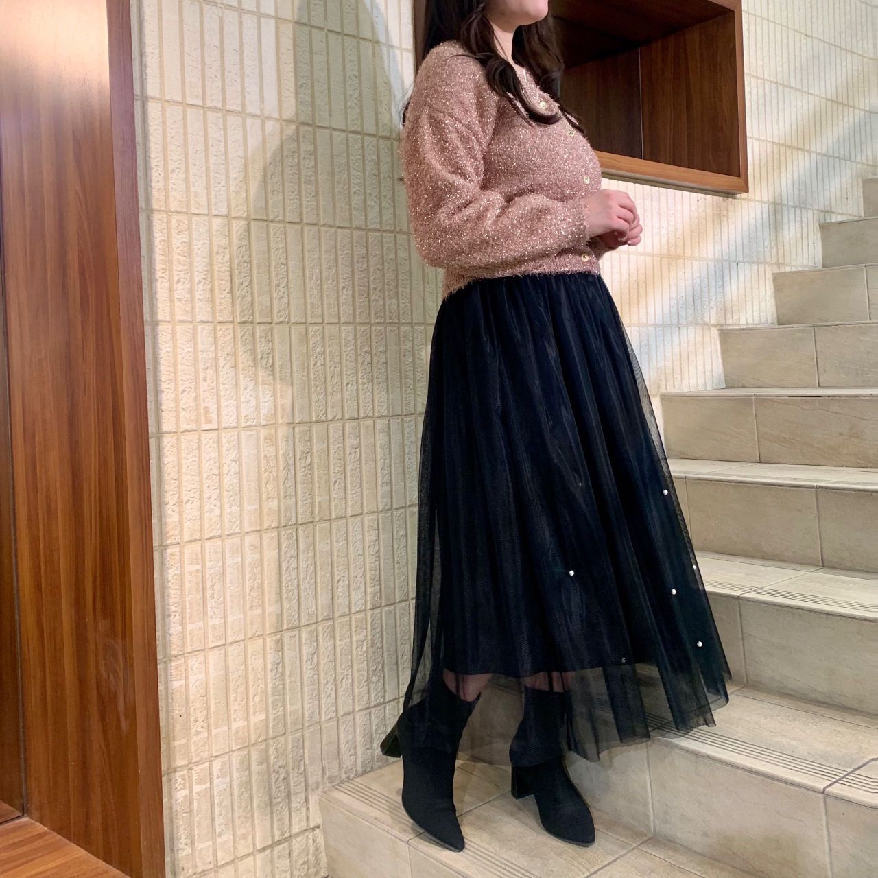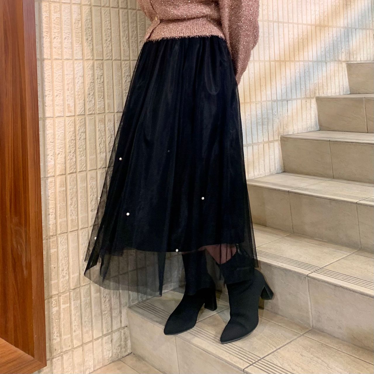 トレンドを抑えた旬なチュール×パール使いがポイントのロングスカートになります!