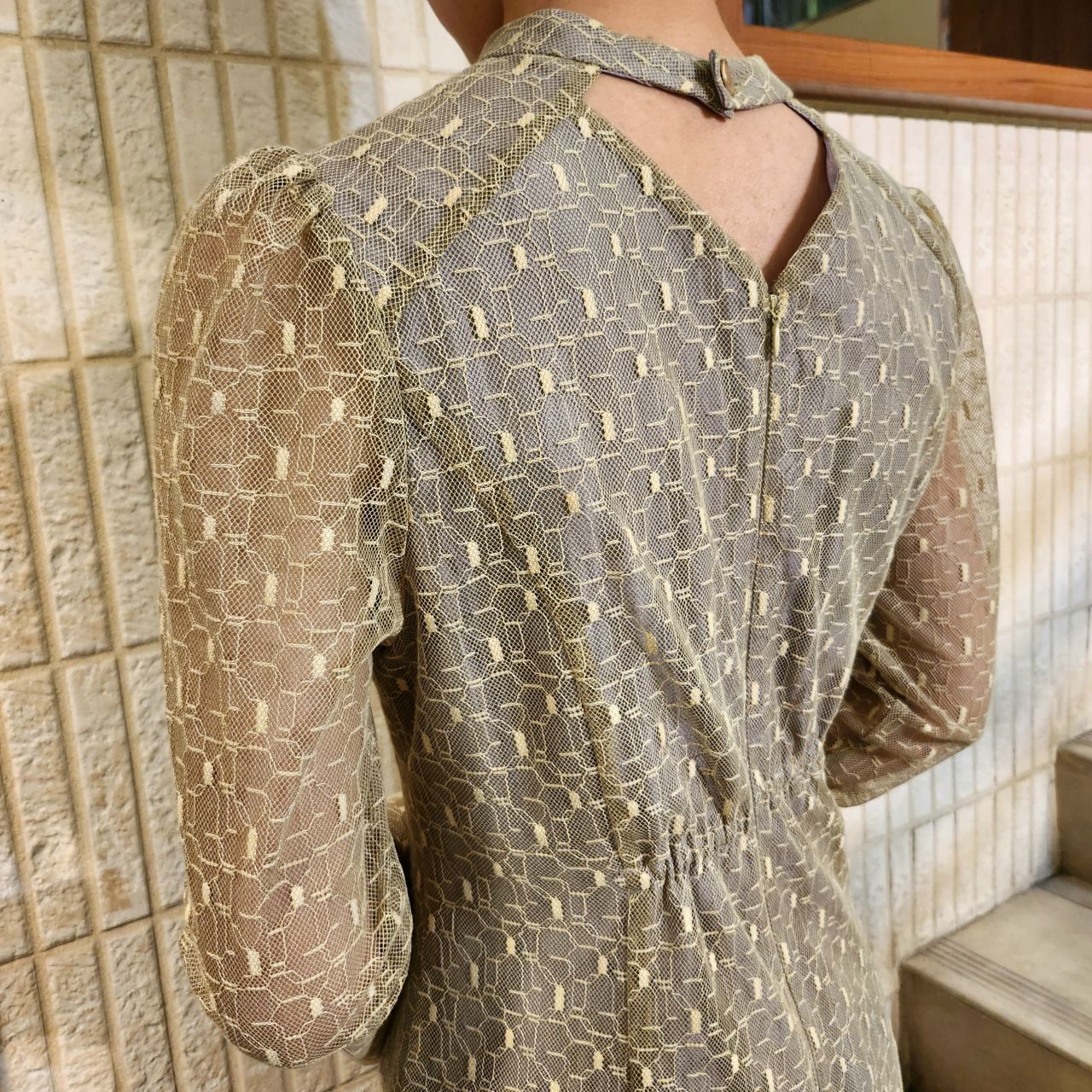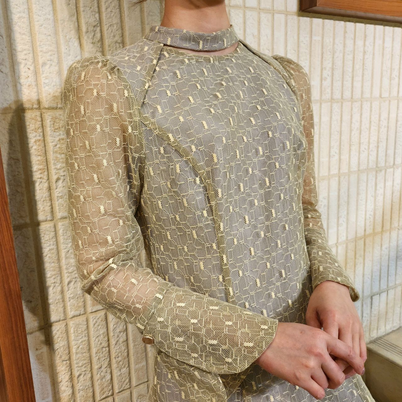 袖部分は長袖にシアー感のある生地にお洒落なメタルボタンとチューリップスリーブのデザインです♪
